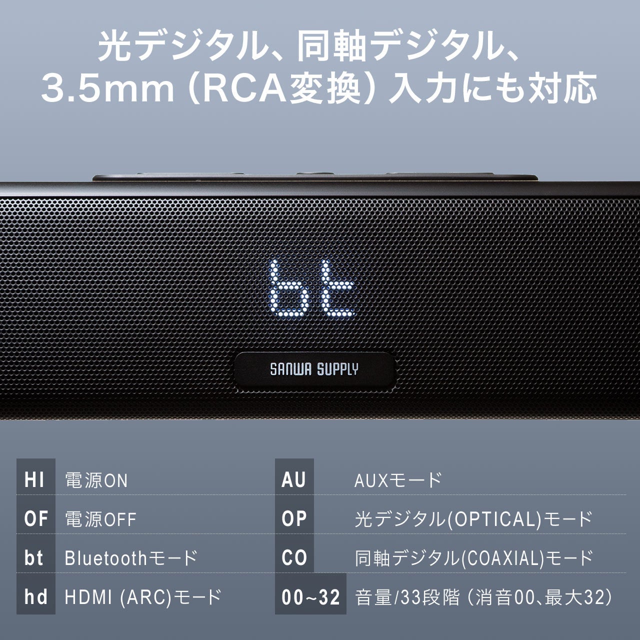 サウンドバー テレビ用 ARC対応 Bluetooth 70W 光デジタル 同軸デジタル RCA接続対応 リモコン付