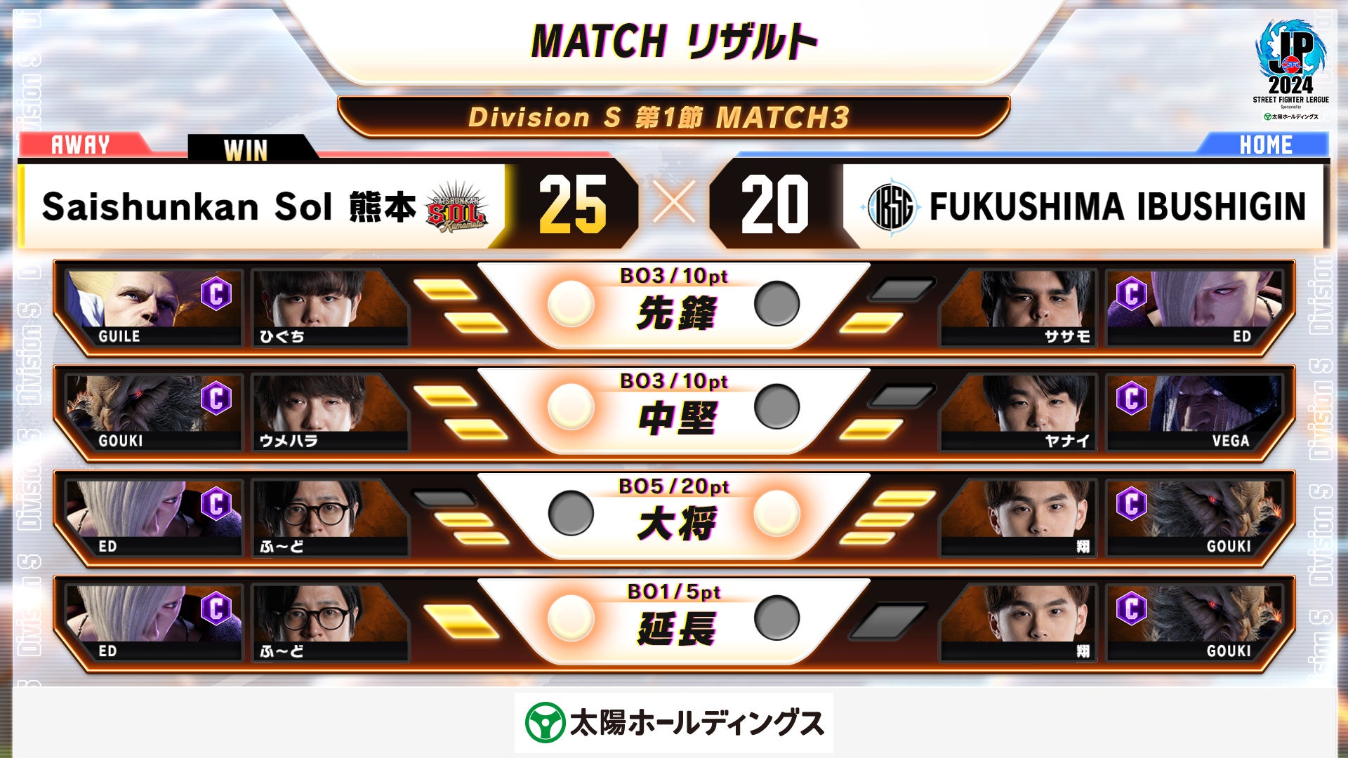 「ストリートファイターリーグ: Pro-JP 2024 Division S 第1節」結果速報!