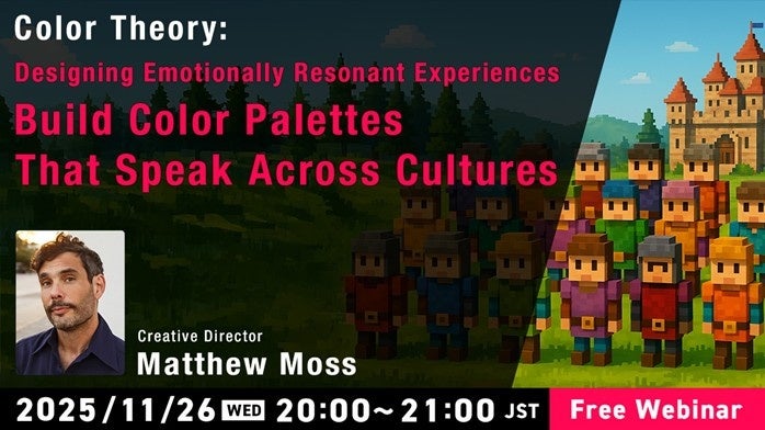 株式会社クリーク・アンド・リバー社(C&R社)は11月26日(水)、ゲーム業界に携わるクリエイターの方などを対象に、無料のオンラインセミナー「色で“感情”を動かすデザイン術とは? 世界に響くカラーパレットのつくり方」を開催します。なお、本セミナーは、全編英語で行いますが、同時通訳を通して日本語でお聞きいただくことも可能です。