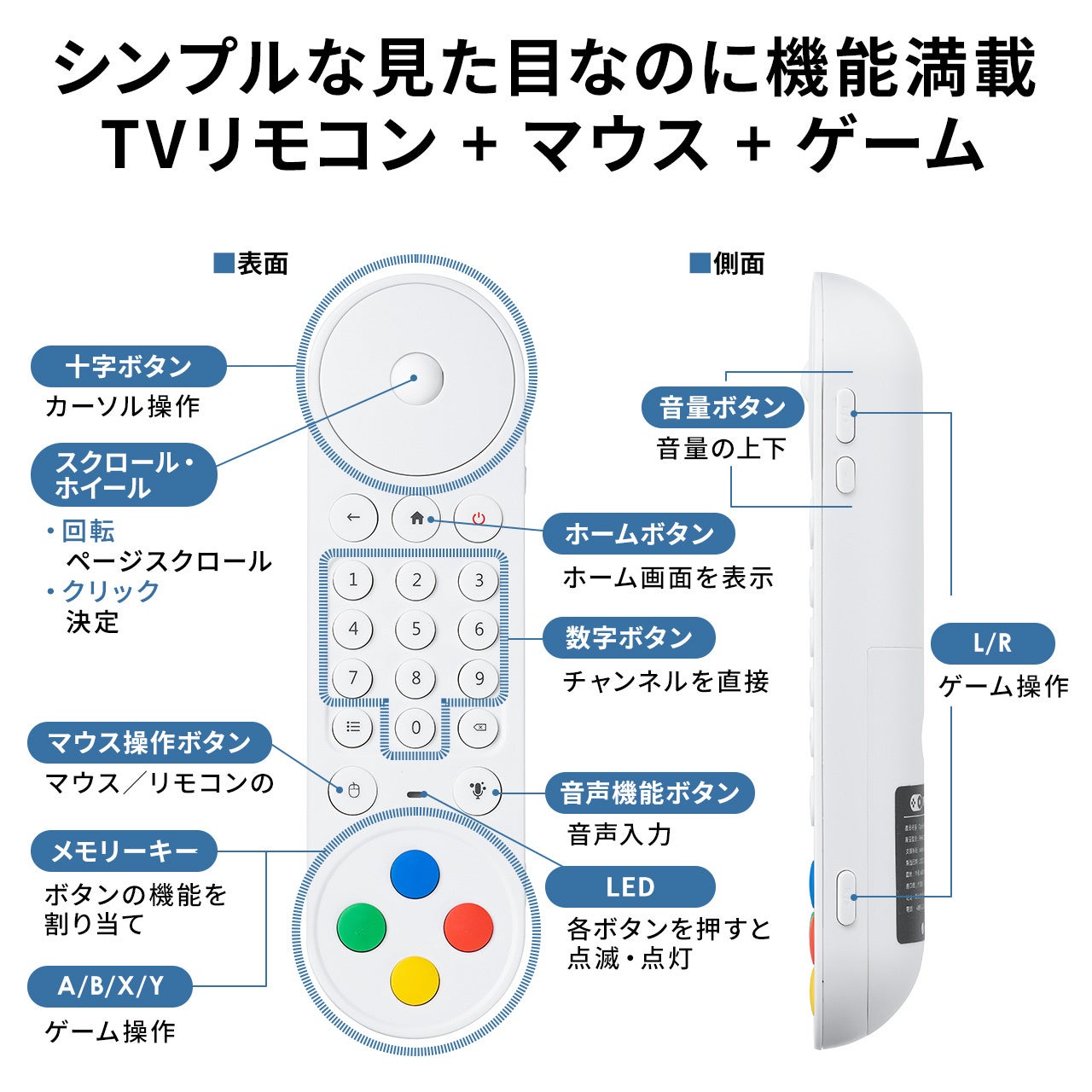 マジックリモコン スマートTV 用 リモコン Bluetooth & USB A 接続 ボタン割り当て マウスリモコン ゲームコントローラー 汎用 androidTV テレビ