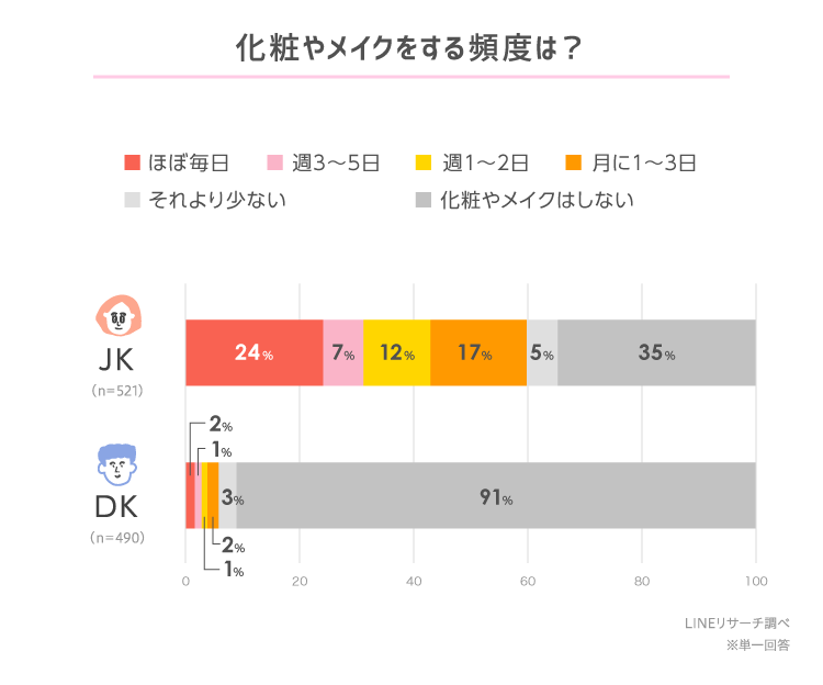 【LINEリサーチ】化粧やメイクに「興味がある」女子高生は8割強、男子高生は2割強