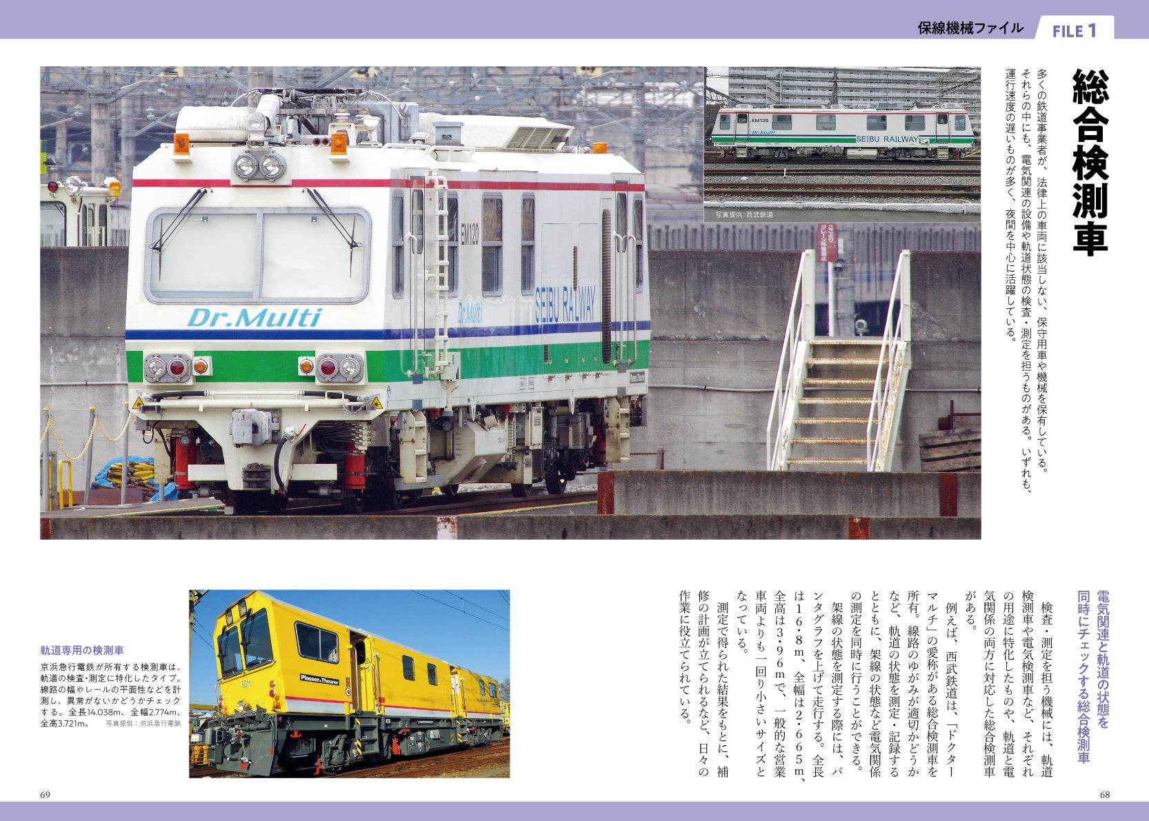 検査・測定車両編、保守用車両編、除雪車両編、3つの章立てではたらく車両を解説