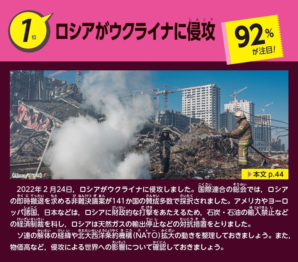 今年の1位は「ロシアがウクライナに侵攻」、3位は「成人年齢が18歳に引き下げ」でした。では、2位に入ったニュースは何だったでしょうか……?