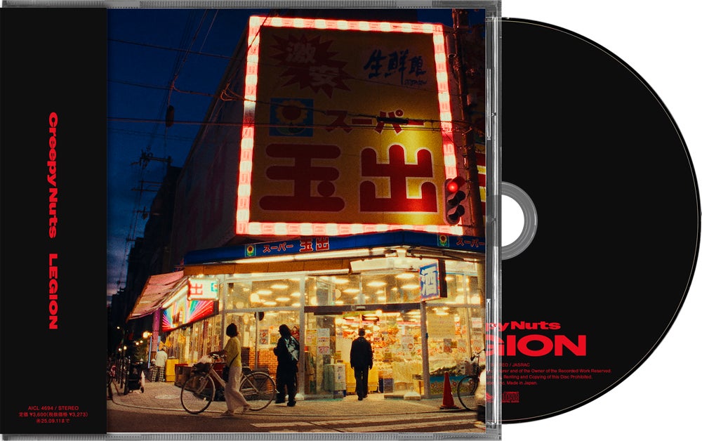 「LEGION」パッケージは通常盤を含めた全3形態で、ラジオ盤は楽曲のCDとラジオトークだけのCDの2CD構成で、70分を越えるラジオトークが収録されており、盤面に記載されたQRコードを読むとユーザーのデバイスからもラジオトークが聞ける仕様。ライブBlu-ray盤には昨年開催された全国ツアー『「Creepy Nuts ONE MAN TOUR 2024」の東京・代々木公演の模様が25曲フルサイズ収録されており、どちらも聞きごたえ、見ごたえ充分なボリュームの内容だ。