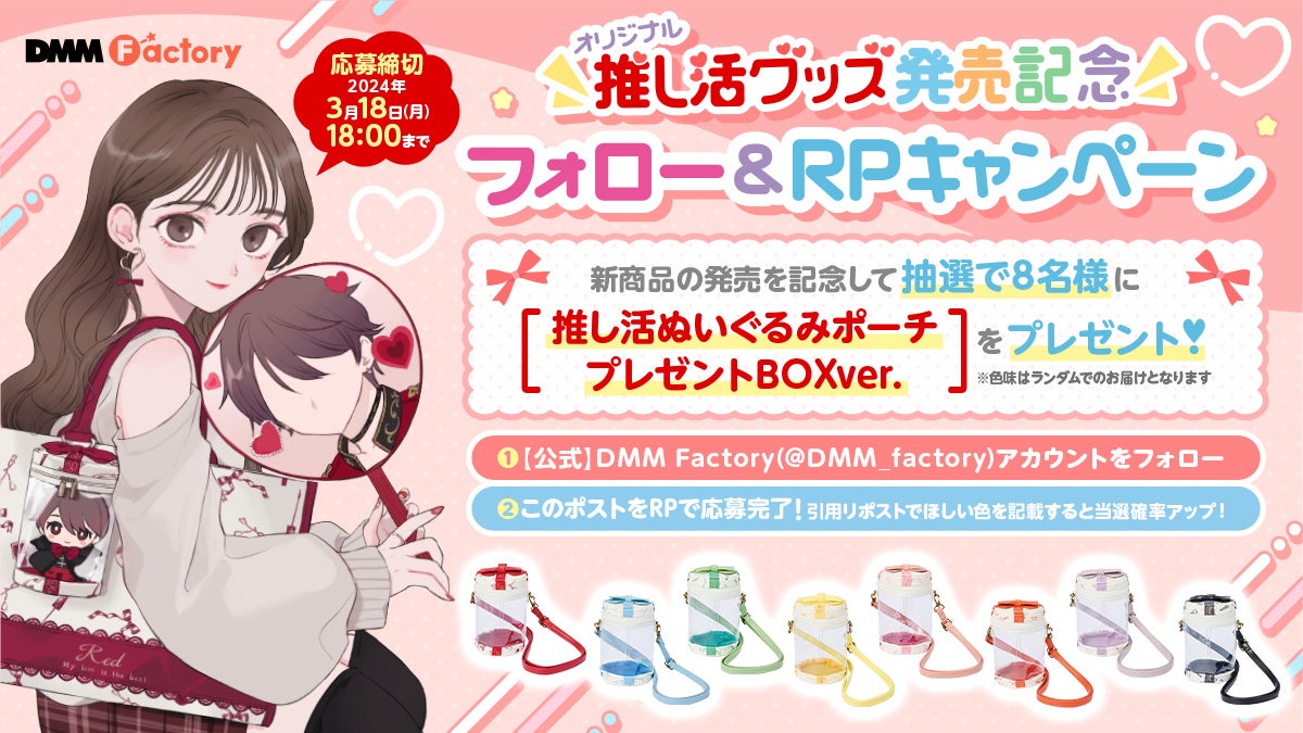 合同会社DMM.com(本社:東京都港区、会長 兼 CEO亀山敬司、https://dmm-corp.com/ 以下DMM )は、グッズメーカーサービス『DMM Factory』から、推し活にピッタリなグッズを2024年3月9日(土)より販売いたします。