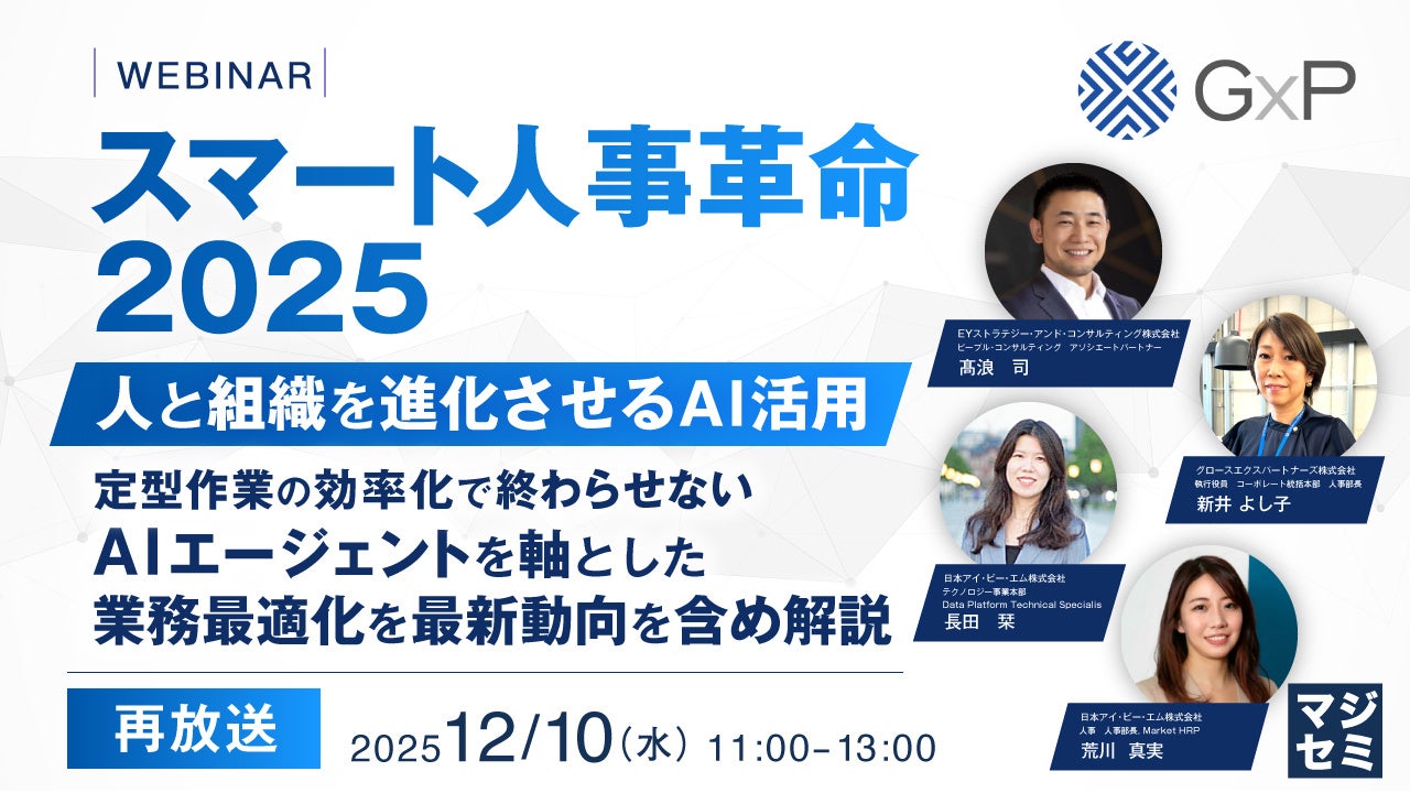 マジセミ株式会社は、大変好評をいただいた「【再放送】スマート人事革命 2025 ― 人と組織を進化させるAI活用」というテーマのウェビナーを再放送します。