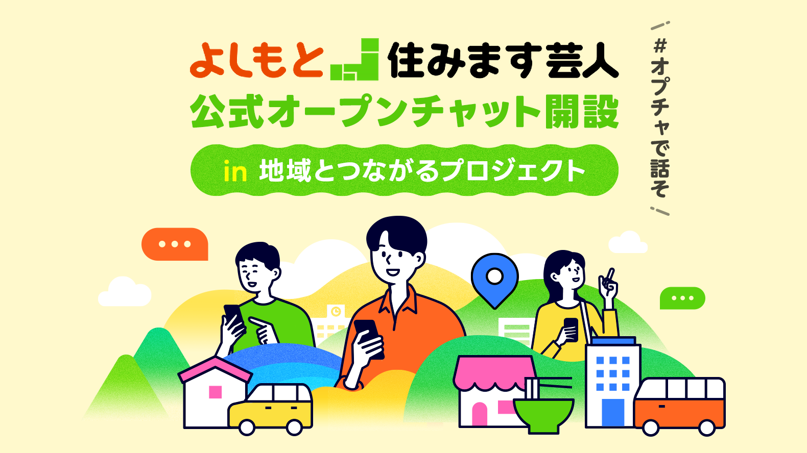その第一弾企画として、笑いの力による地域活性化を目的に活動している「よしもと住みます芸人」と連携し、各地域の公式オープンチャットを開設・運用する取り組みを実施します。公式オープンチャットでは地域の魅力やリアルタイムな情報の共有、「よしもと住みます芸人」の活動報告までさまざまな発信が行われる予定です。