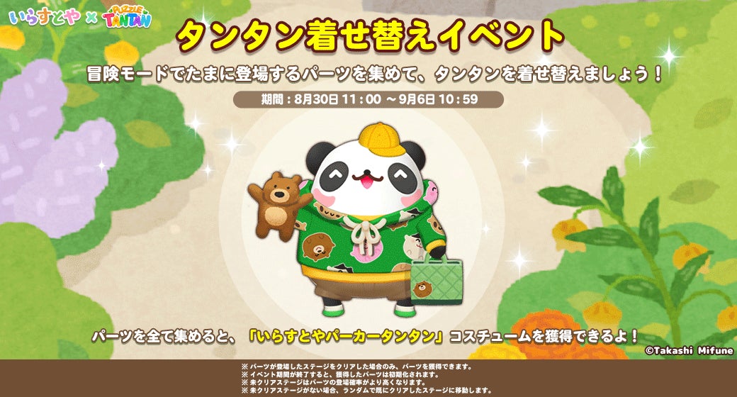 『いらすとや』とのコラボを記念して、期間限定の特別なコスチュームが登場します。タンタンの着せ替えイベントやコスチュームガチャや限定パッケージにて入手が可能です。