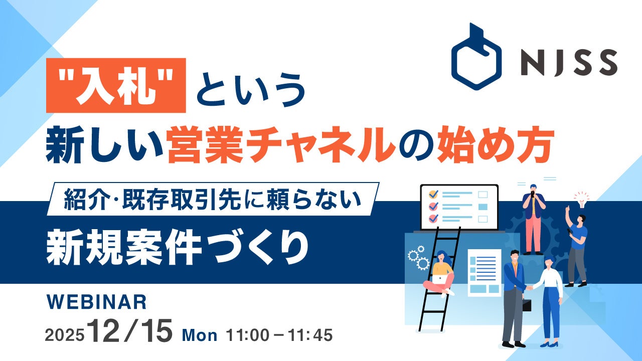 本セミナーでは、公共入札を単発の“当てもの”ではなく、紹介・既存取引先に次ぐ“もう一つの営業チャネル”として育てていくための基本とステップを、初めての方にも分かりやすく解説します。入札とは何か、どんなメリットがあるのかという基礎から、参加資格の考え方、入札情報の探し方、仕様書で見るべきポイント、過去の落札結果を活用した無理のない金額設定までを整理し、あわせて全国約8,900の発注機関から入札・落札情報や仕様書を一括検索できる入札情報データベース「NJSS」のデモを通じて、情報収集や案件管理をどのように効率化できるのかをご紹介します。