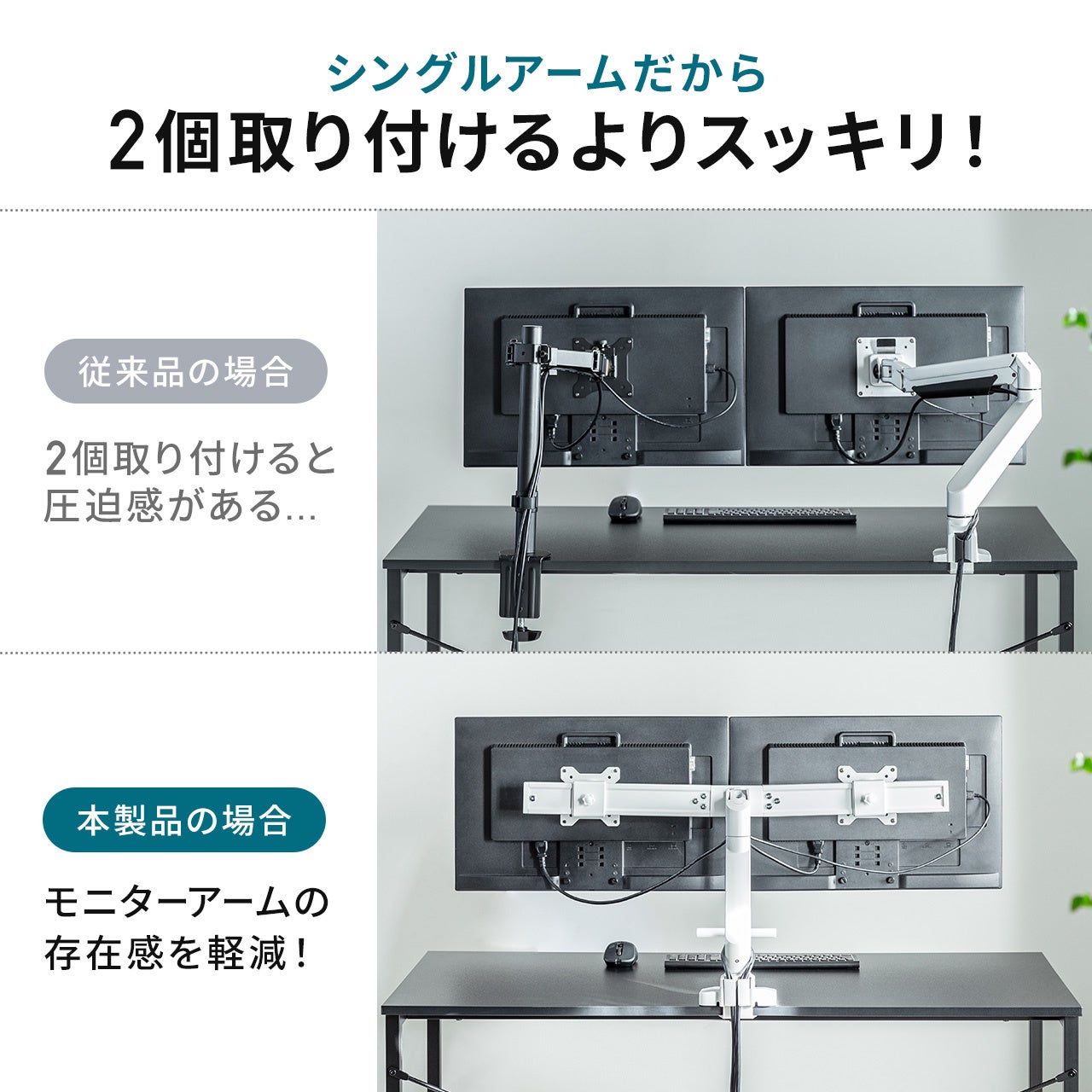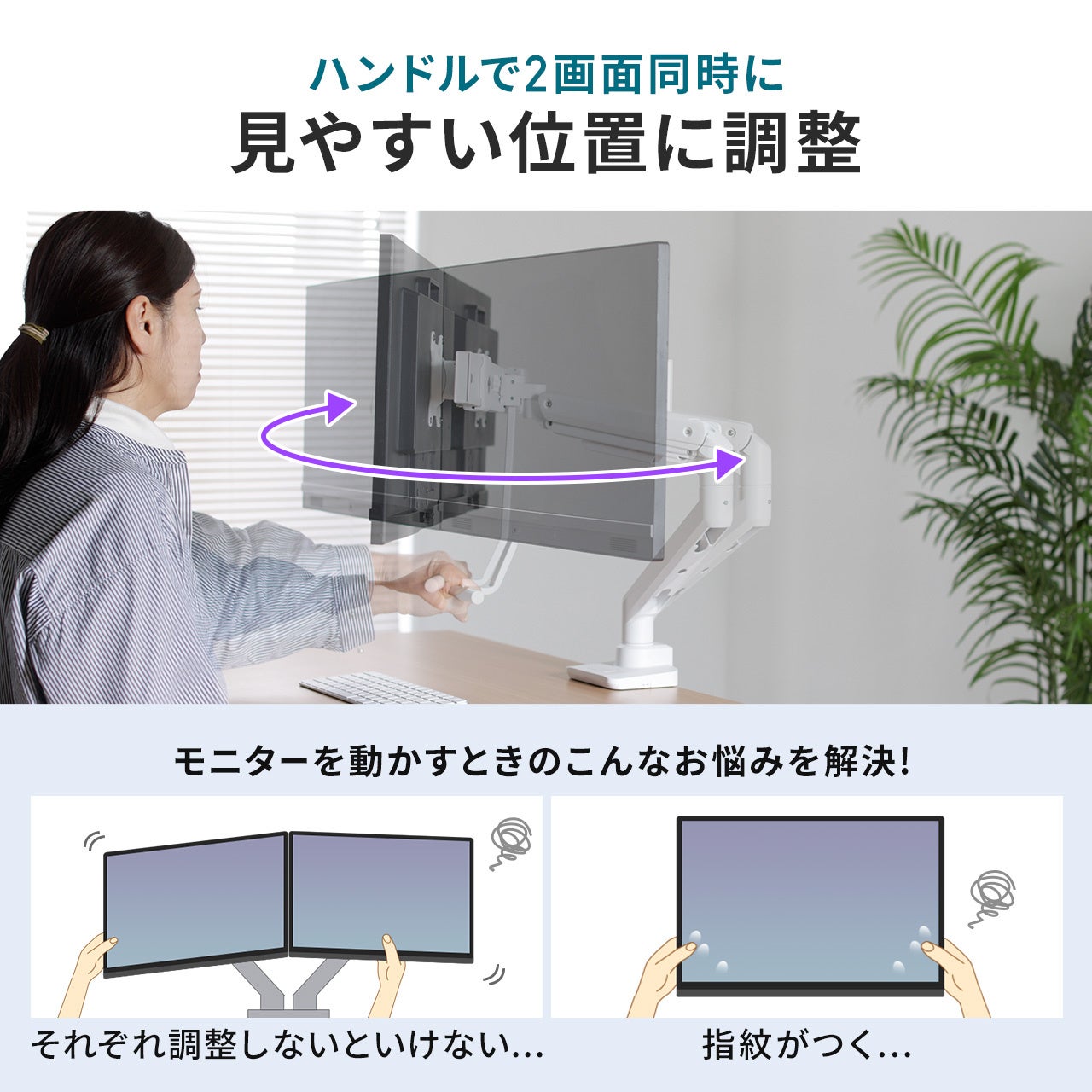 モニターアーム デュアル 32インチ対応 クランプ ハンドル付 ガス圧 耐荷重9kg