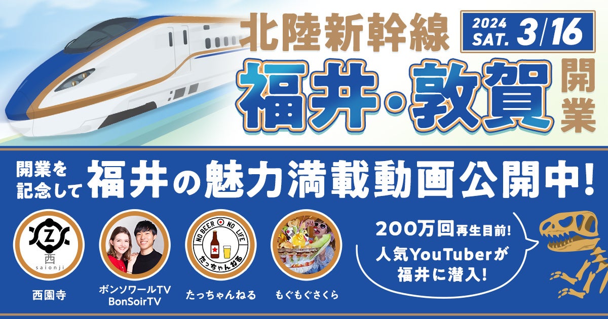 2024年3月16日(土)の北陸新幹線福井・敦賀開業に伴い、多方面で活躍するYouTuber4組とタイアップし、「鉄道」「観光」「グルメ」を中心に、福井県の魅力をお届けいたします。