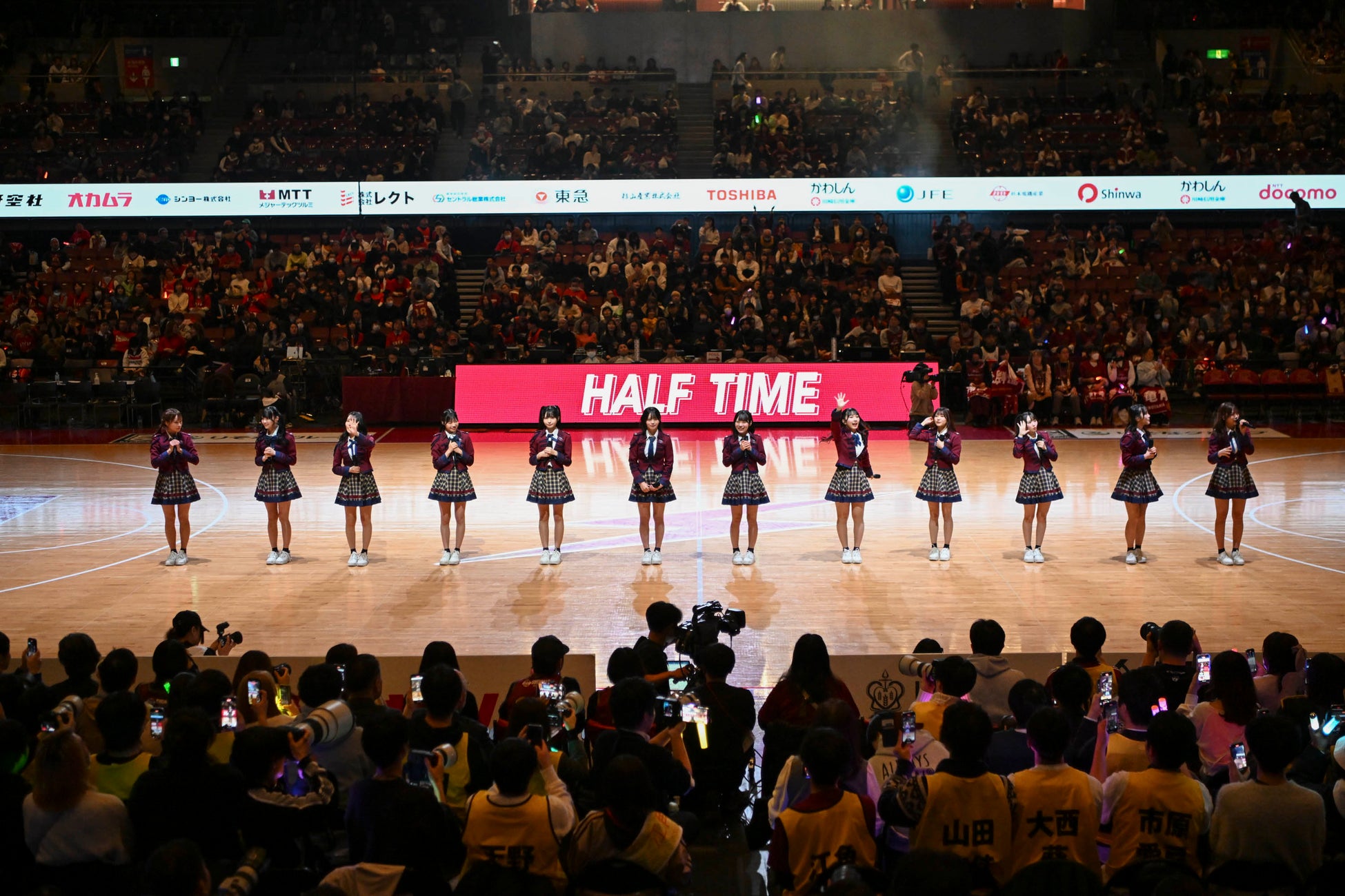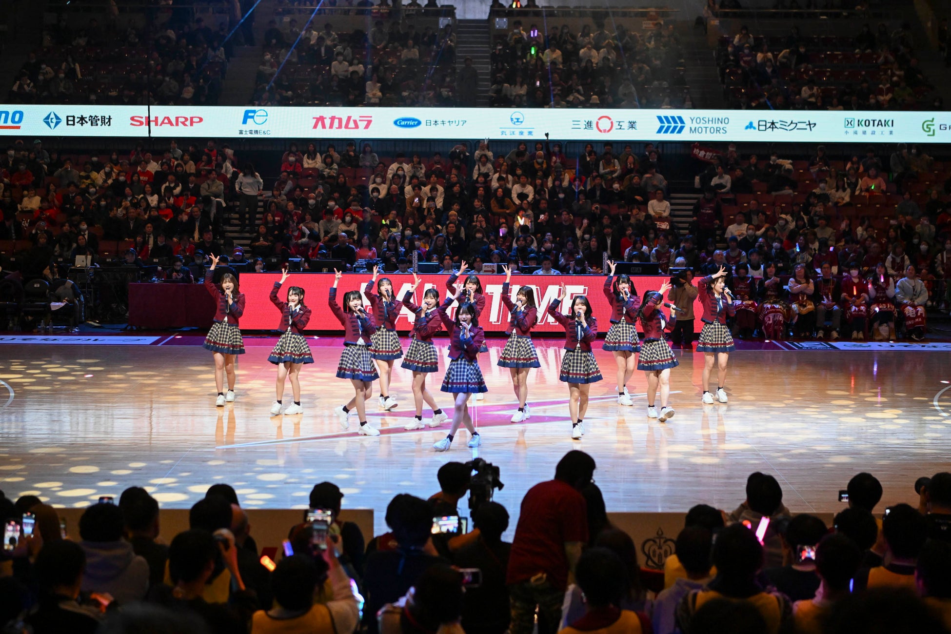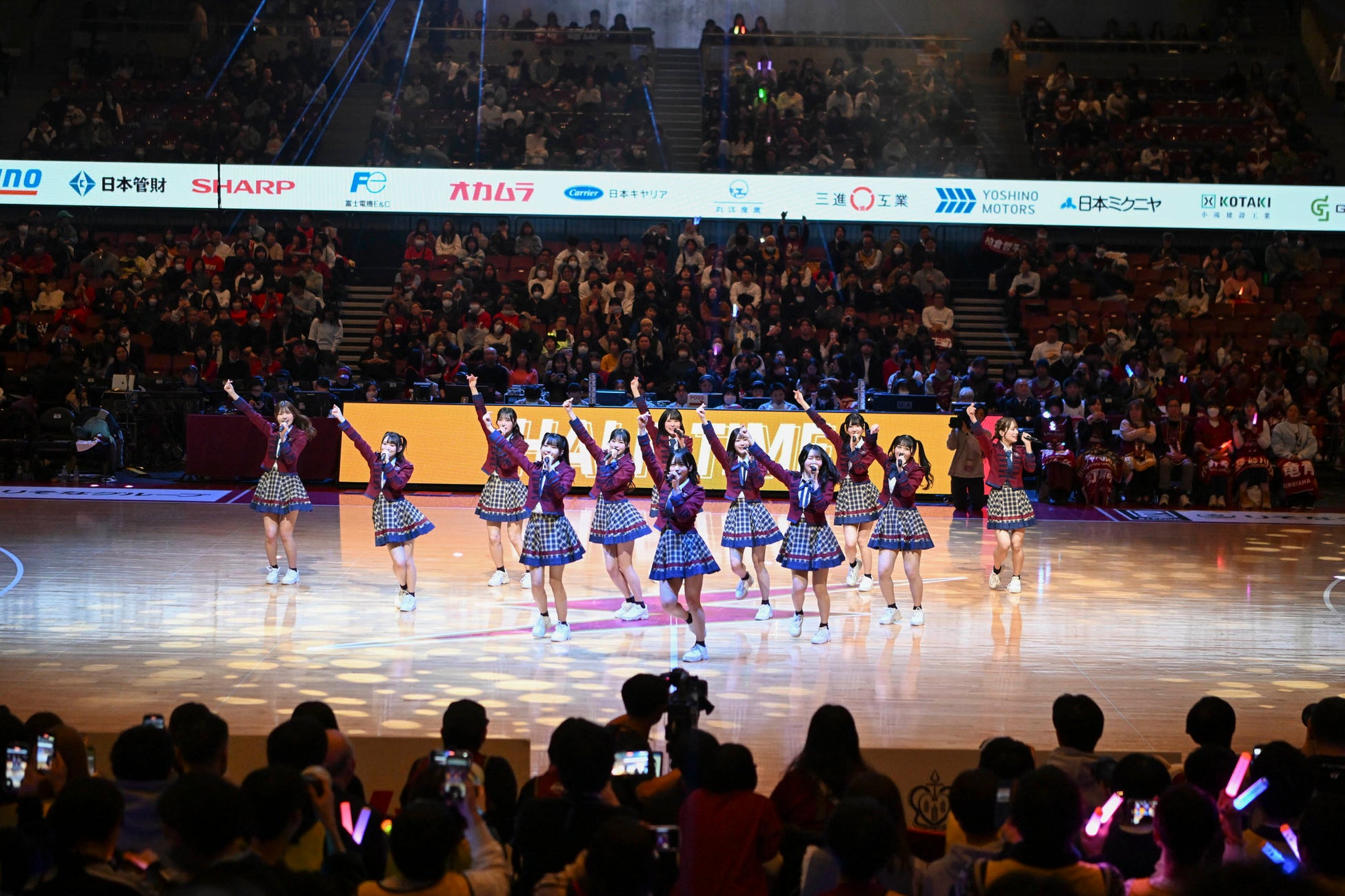 指原莉乃プロデュースのアイドルグループ≒JOY。 川崎ブレイブサンダースホームゲームに初ゲスト出演し、気迫あふれるパフォーマンスを披露!!