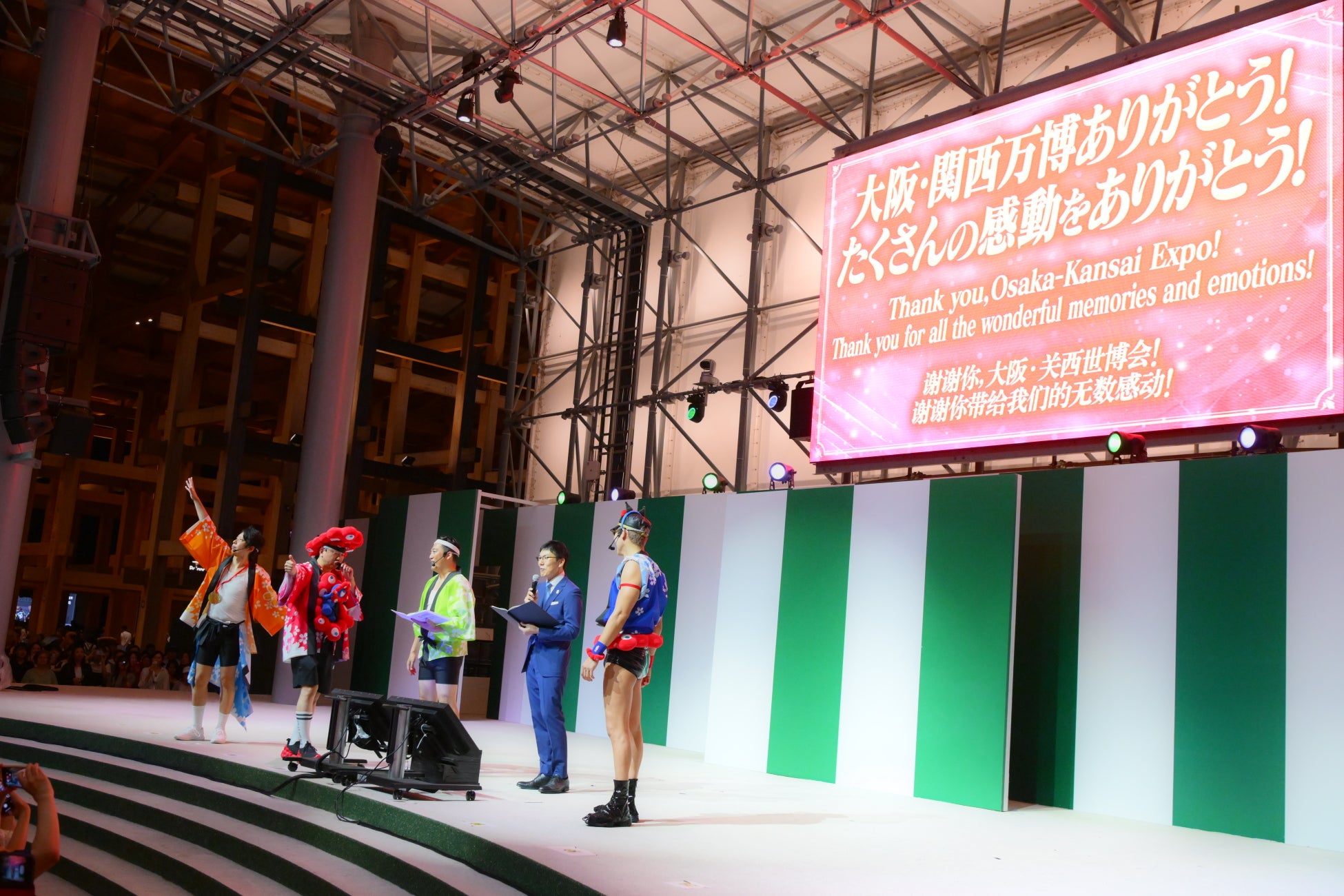 盆踊りを盛り上げたレイザーラモン、藤崎マーケットが「本日は万博最終日。ここでは終わりません。まだステージは続きます」と宣言。