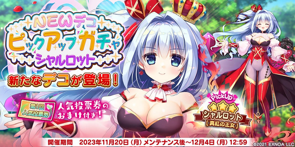『救世少女 メシアガール おかわり』推しに投票「第1回人気投票」開催!シャルロットの新★3真紅の王女デコがピックアップガチャに登場!