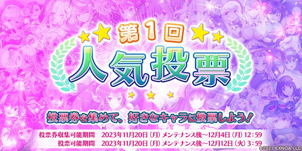 期間限定のイベントステージを攻略して「第1回人気投票券」を獲得、「投票ステージ」で好きなキャラに投票しましょう!