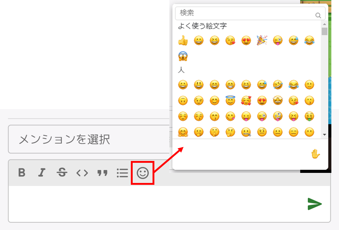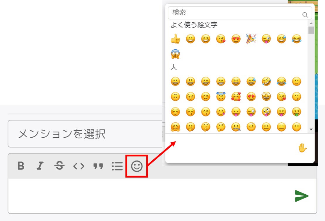 また今回、チャットのテキストフォームに絵文字ボタンが追加され、より絵文字が使いやすくなっております。