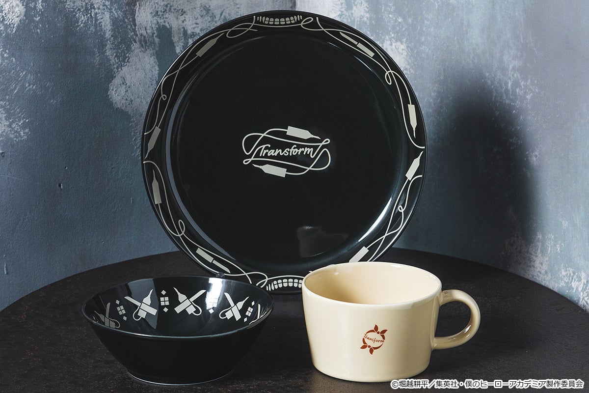 死柄木弔、荼毘、トガヒミコそれぞれをイメージしたクールな「食器セット」と、おしゃれなゴブラン織りの「クッションカバー」。