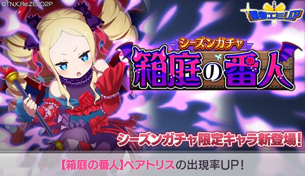 また、ストーリーイベント「勇者エミリアⅡ~空と夢と希望の大地~」の特効を持った新キャラクター「【箱庭の番人】ベアトリス★3」が新登場するシーズンガチャ「【箱庭の番人】」を同時開催します。