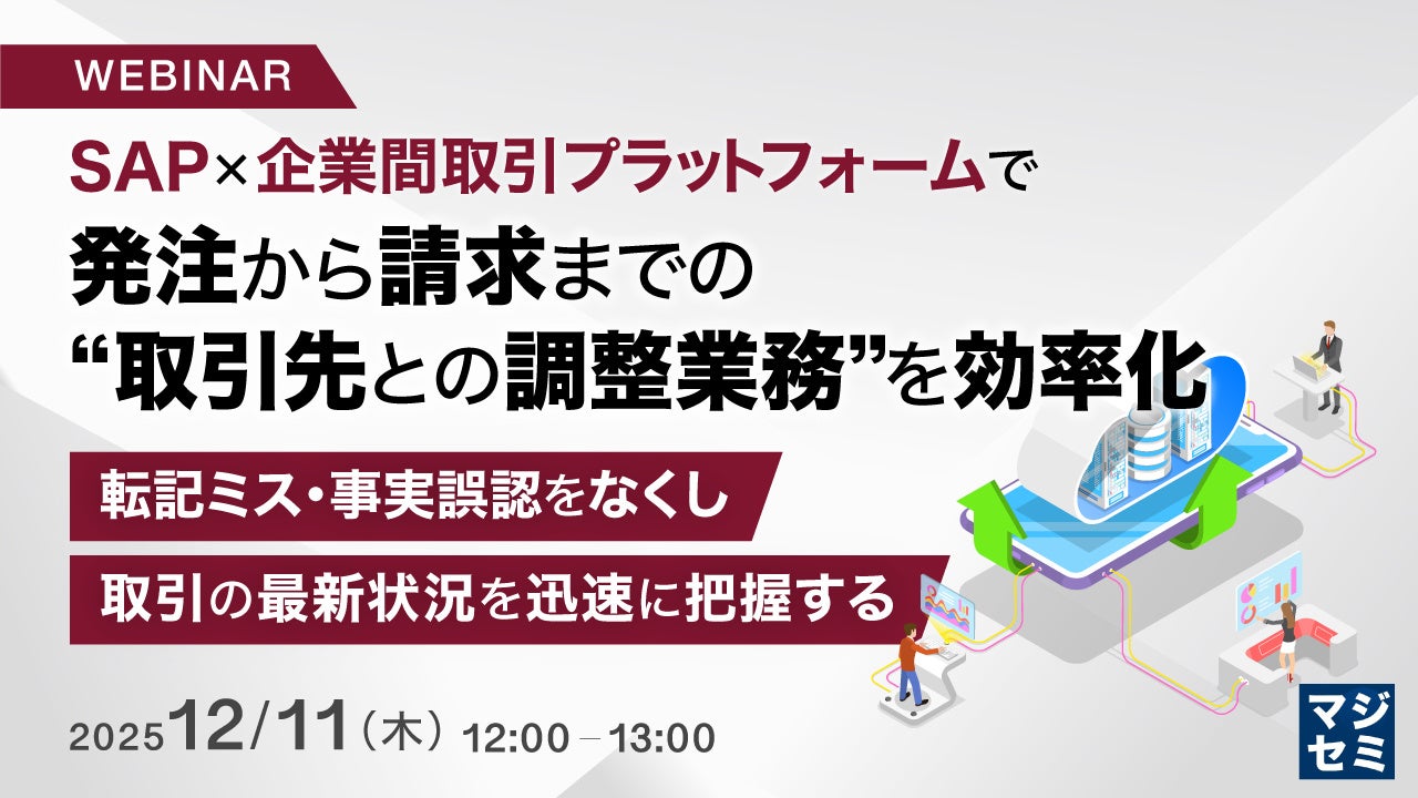 マジセミ株式会社は「SAP×企業間取引プラットフォームで発注から請求までの“取引先との調整業務”を効率化」というテーマのウェビナーを開催します。