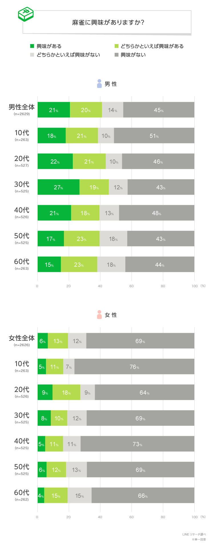 【LINEリサーチ】麻雀に興味がある人は全体の約3割 男性20~30代では4割超という結果に