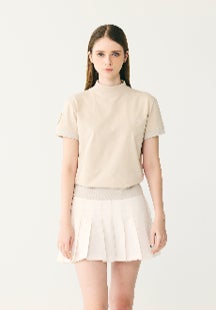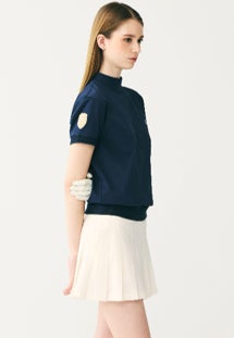 第一弾は、ショートスリーブモック。ゴルフでも日常でも美しく見えるよう、シルエットやリブ使いにこだわりました。10~30代の女性を中心に、年齢や体形にとらわれずゴルフを楽しんでほしい。体のラインを取りすぎないのに、ウエスト位置が決まる絶妙なバランス、どんな装いにも合うオフホワイト・ネイビー・ベージュの3色です。