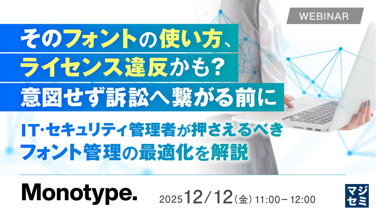 マジセミ株式会社は「そのフォントの使い方、ライセンス違反かも?意図せず訴訟へ繋がる前に」というテーマのウェビナーを開催します。