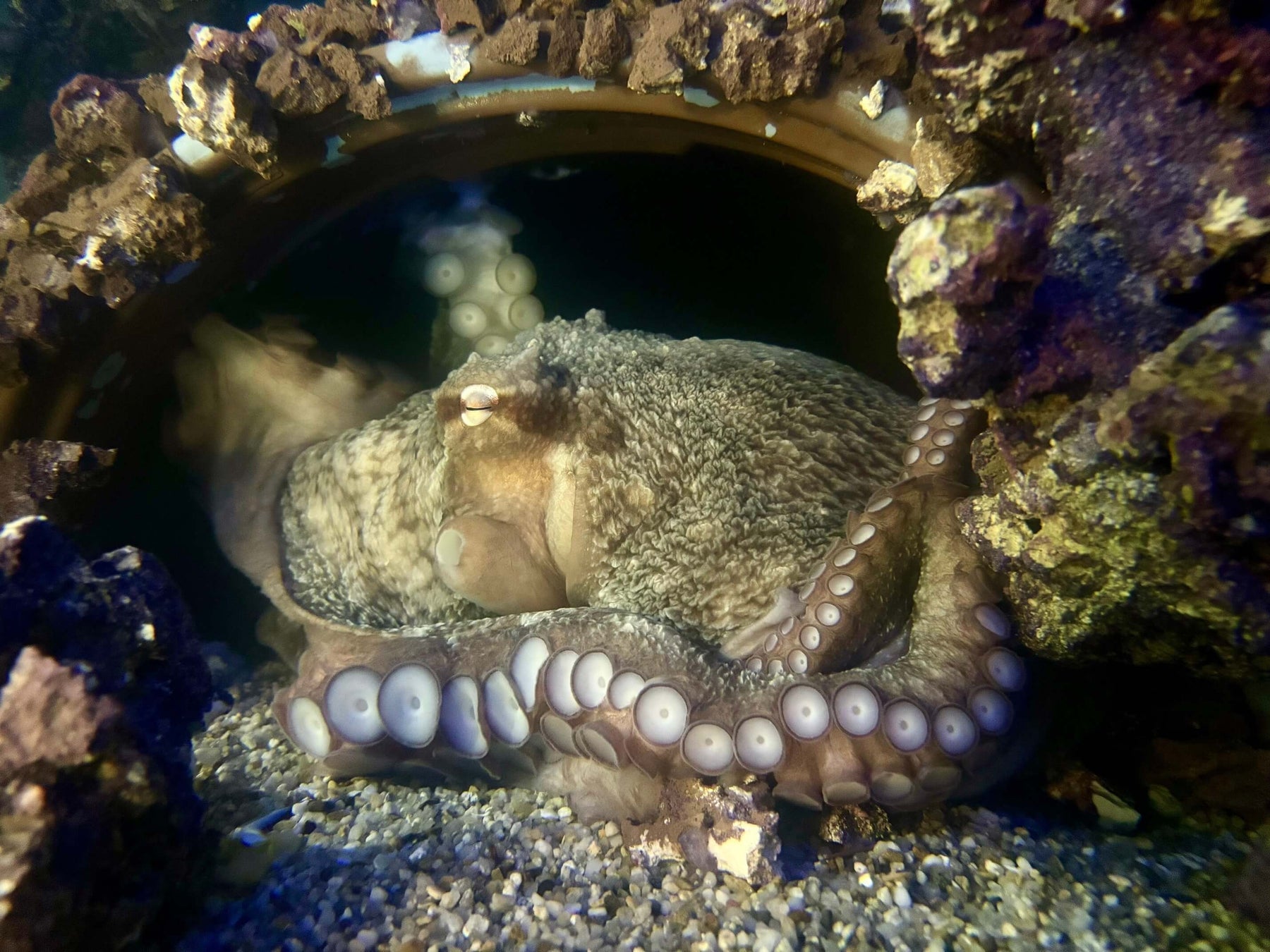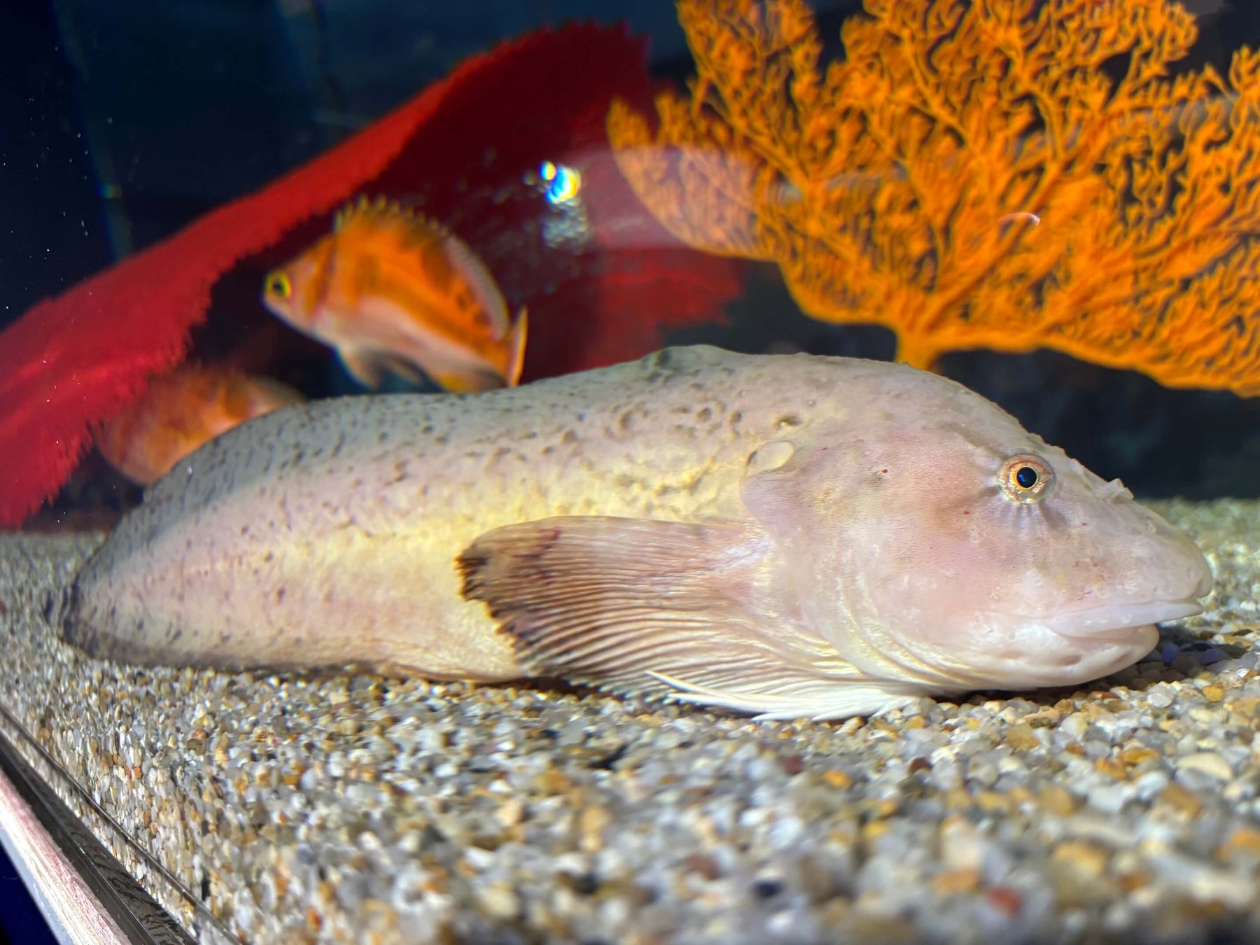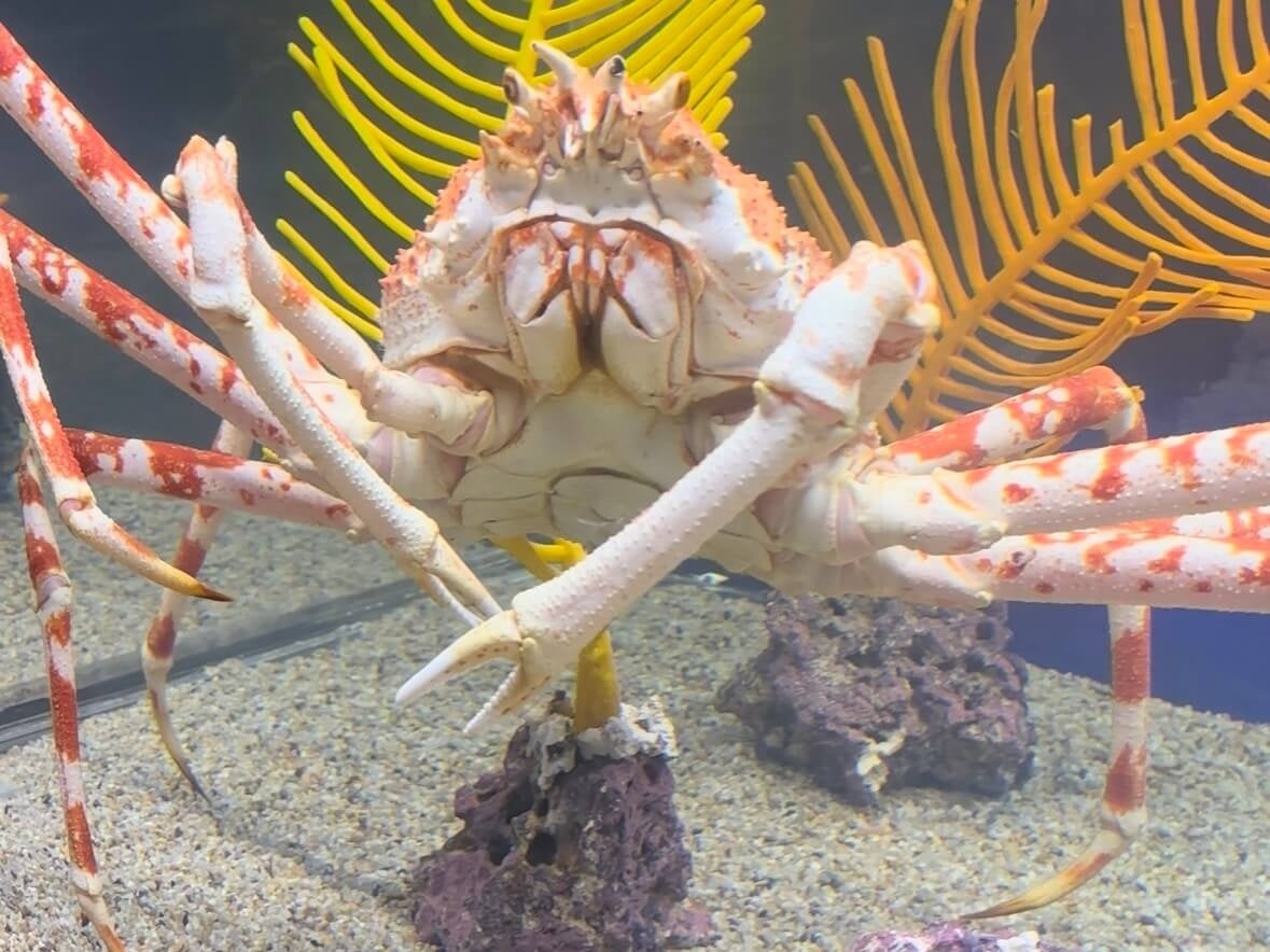 寒い海域に住む生きものたちの姿を、沖縄の子どもたちにも見ていただけるよう「冷水魚エリア」を新設しました。世界最大のカニ「タカアシガニ」や、北海の大型軟体動物「ミズダコ」、深海の掃除屋「オオグソクムシ」、逆立ち状態で泳ぐ珍魚「サギフエ」など、個性豊かな計7種類の冷水魚をお楽しみいただけます。