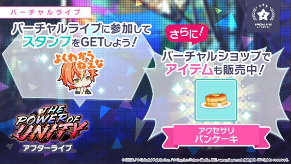 また、「THE POWER OF UNITY アフターライブ」の開催に先立ち、5月20日(金)からバーチャルショップにて、アクセサリ「パンケーキ」を販売中です。