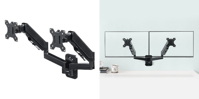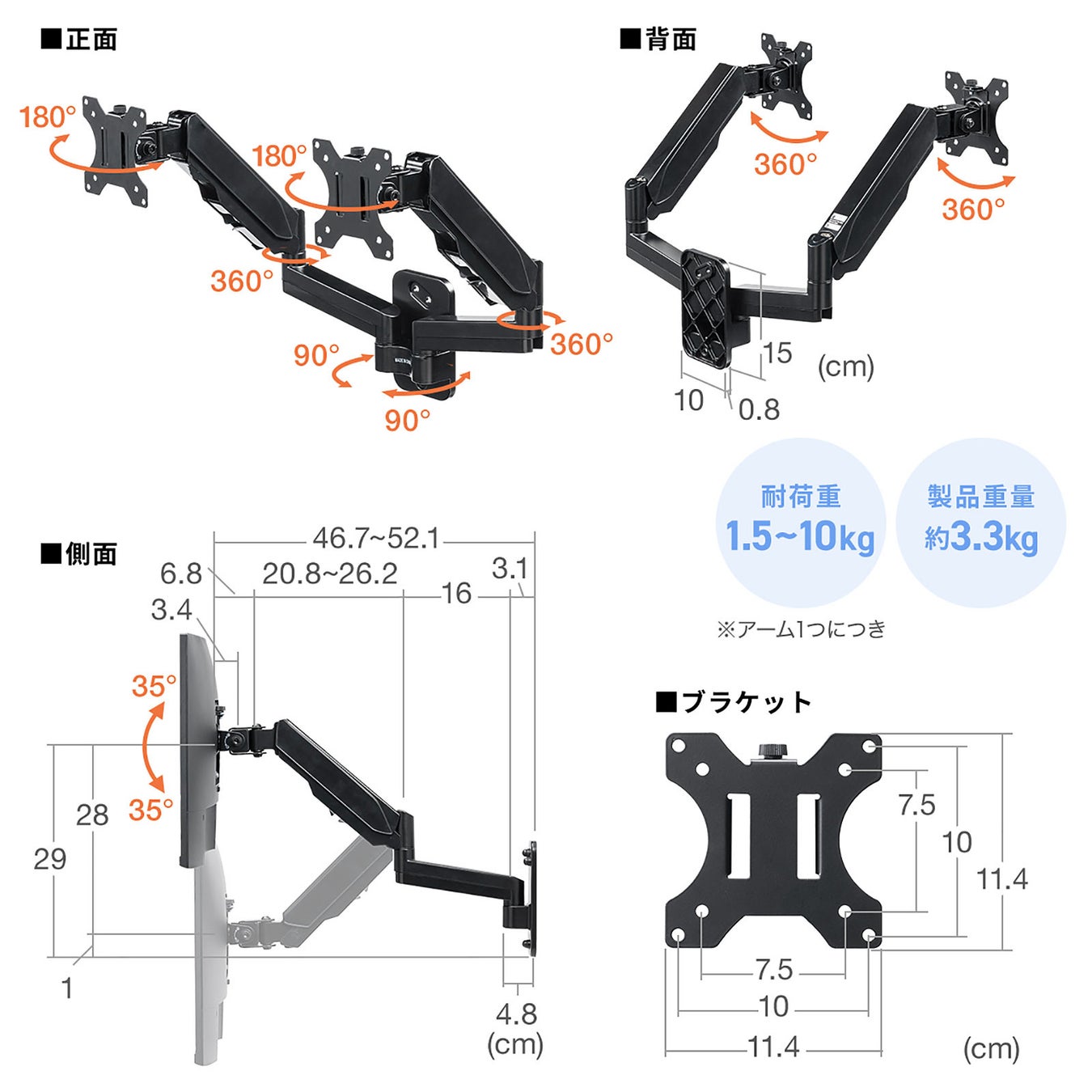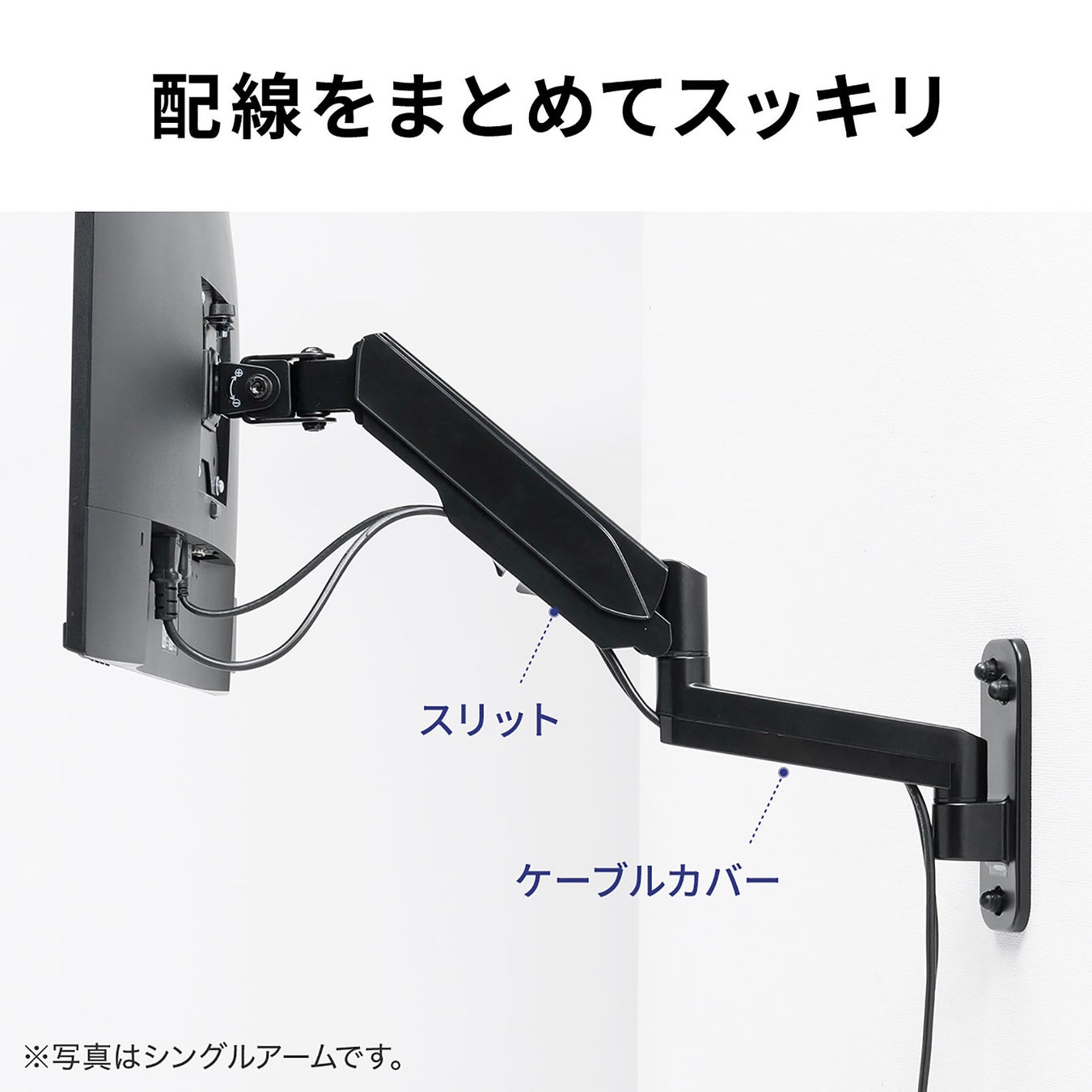 デュアルモニター モニターアーム 壁設置 ガス圧式 32インチ対応 上下 左右調整 耐荷重10kg ブラック