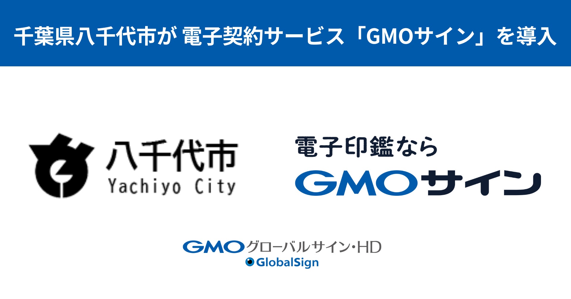 GMOグローバルサイン・ホールディングス株式会社(代表取締役社⻑:⻘⼭ 満 以下、GMOグローバルサイン・HD)は、自社が開発運営する電子契約サービス「電子印鑑GMOサイン」(以下、GMOサイン)が、2024年10月より千葉県八千代市(市長:服部 友則 以下、八千代市)に導入されることをお知らせいたします。