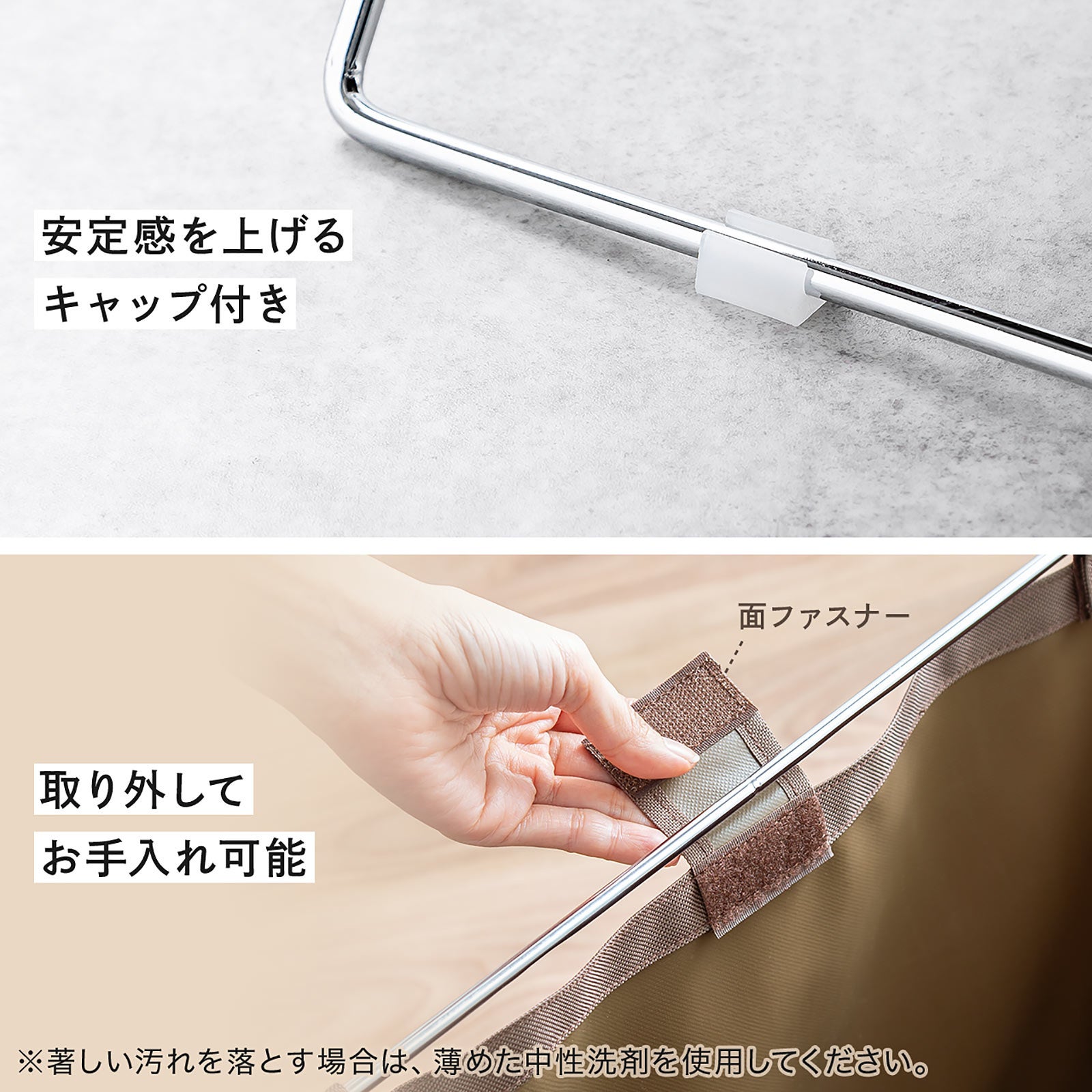 バスケット部とフレームは分離でき、取っ手付きなので持ち運びも可能です。