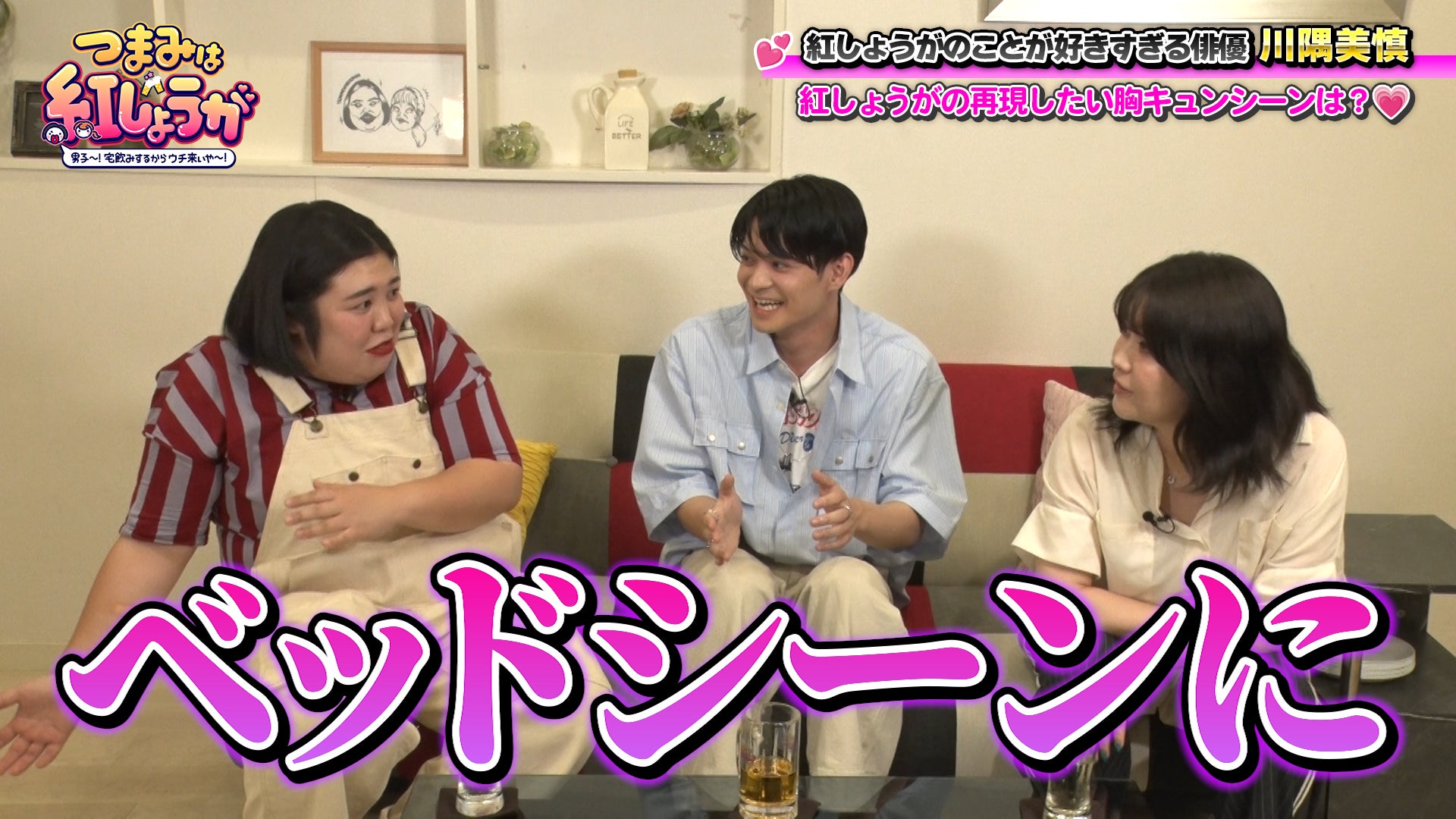 紅しょうがが、“宅飲み”スタイルでステキな男子ゲストと食べて飲んでトークする、BSよしもとの番組『つまみは紅しょうが 男子~!宅飲みするからウチ来ぃや~』(毎月第3・4土曜23:30~)。10月25日(土)の放送回では、前回からの引き続きで、舞台などを中心に活躍する俳優であり、紅しょうがのファンを公言する川隅美慎がゲストとして登場します。