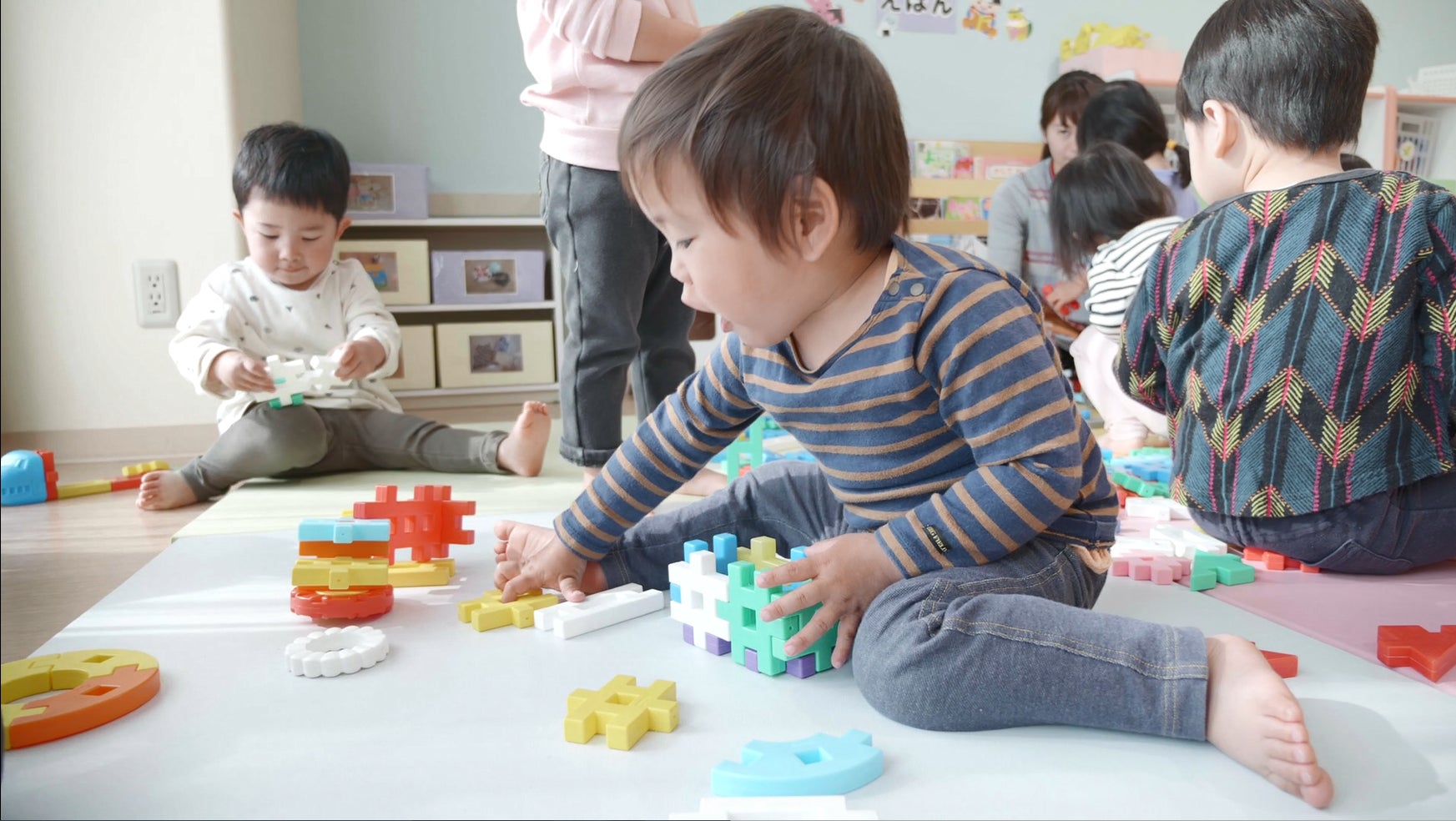 1歳半頃から小学生になるまで、興味や遊びの発展に合わせて長く遊ぶことができ、豊かな経験を通して、「できた!で広がる発想の力」を育みます。