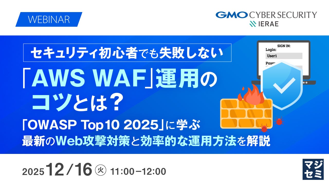 マジセミ株式会社は「セキュリティ初心者でも失敗しない「AWS WAF」運用のコツとは?」というテーマのウェビナーを開催します。