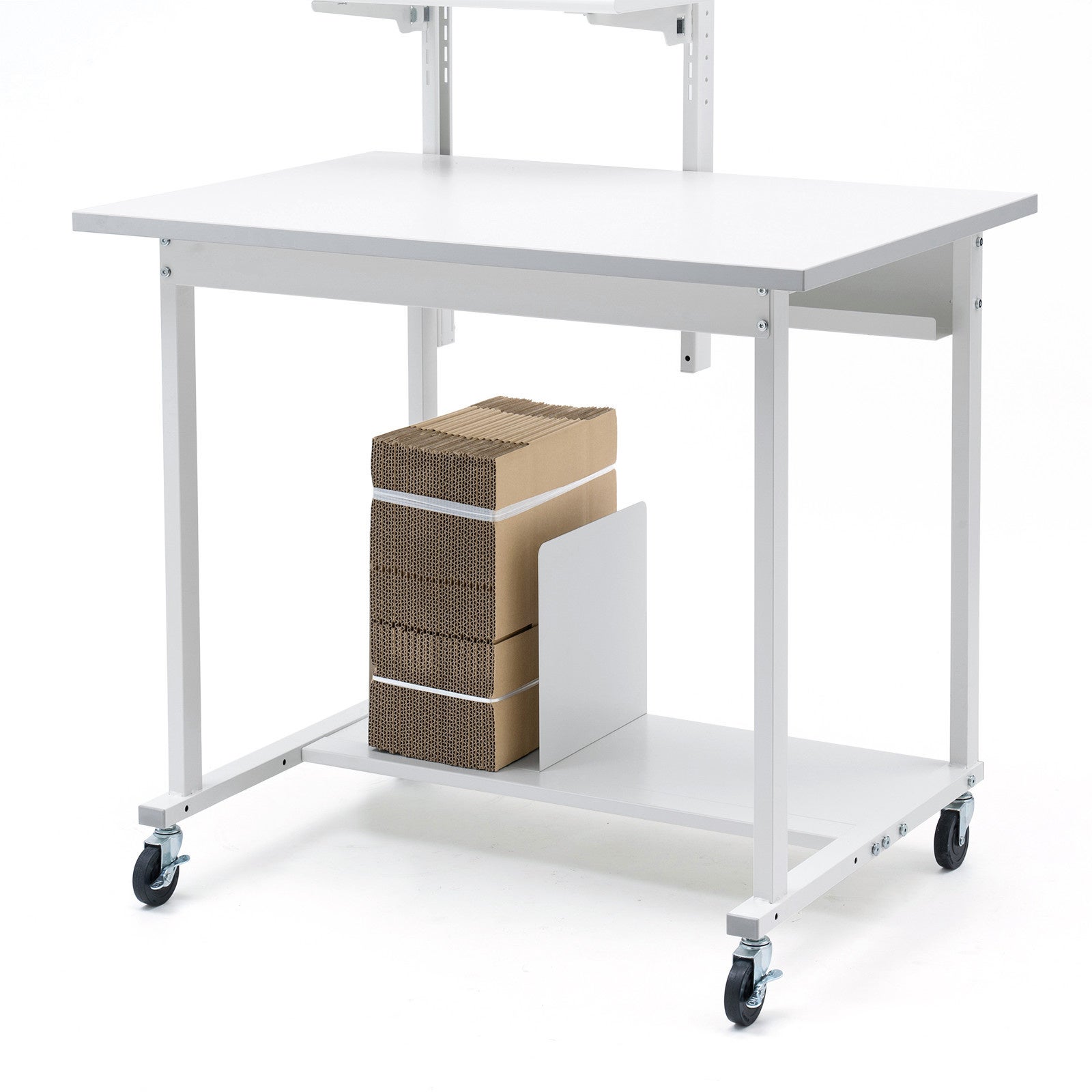 ラベルプリンターや梱包材などを置くスペースとしてサブテーブルや下棚がオプションで追加できます。