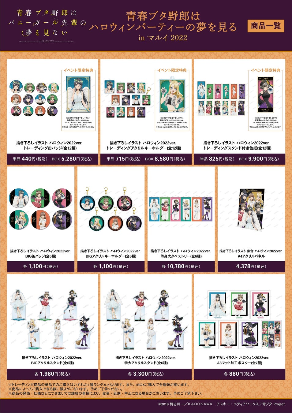 漫画・アニメのオリジナルグッズを販売する「AMNIBUS」を運営する株式会社アルマビアンカは「青春ブタ野郎はハロウィンパーティーの夢を見る in マルイ 2022」を開催いたします。