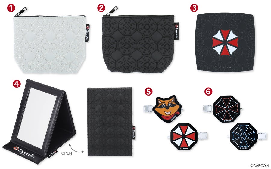 「バイオハザード」シリーズでお馴染みのアンブレラ社のマークをステッチ風にしたポーチ、ミラー、前髪クリップが新登場! 思わずシリーズで揃えたくなる3アイテムをご紹介いたします。