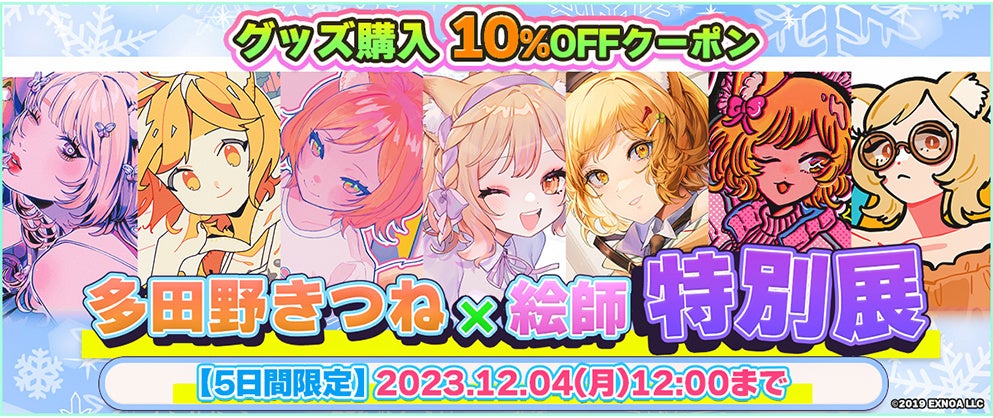 『多田野きつね特別展』の開催を記念して、DMM GAMESショップで使える5日間限定の10%OFFクーポンを配布中です。この機会にぜひ『多田野きつね特別展』オリジナルグッズをお得に手に入れてください!