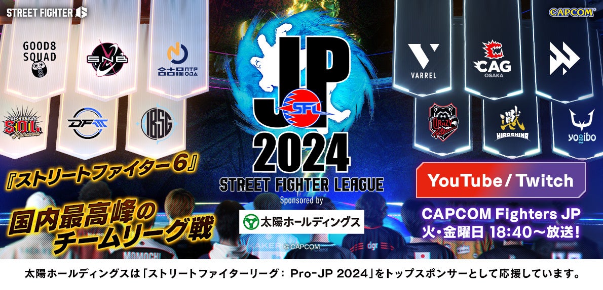 シリーズ最新作『ストリートファイター6』を⽤いて⾏われるカプコン公式チームリーグ戦で、太陽ホールディングス株式会社がトップパートナーとしてサポートしている「ストリートファイターリーグ: Pro-JP 2024」。
