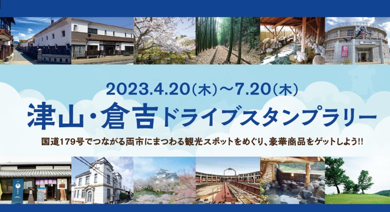 このスタンプラリーは、両市に共通する「重要伝統的建造物群保存地区」「絣(かすり)」「さくら名所100選」「鉄道」「温泉」「両市おすすめスポット」の6つをテーマに、12カ所のスタンプスポットを巡るスタンプラリーです。JAF岡山支部はドライブスタンプラリーシステムの提供や企画の広報に協力しています。