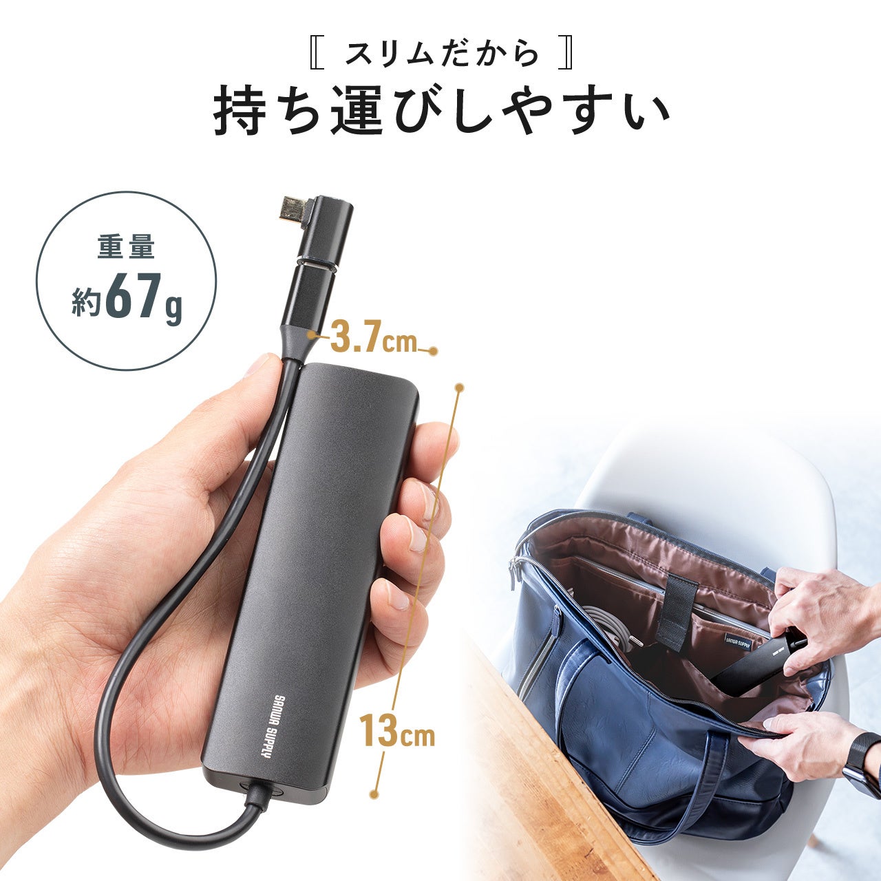 ドッキングステーション USB-C HDMI 4K L型アダプタ USB PD100W カードリーダー L字が使いやすい ケーブル長20cm モバイルドッキングステーション