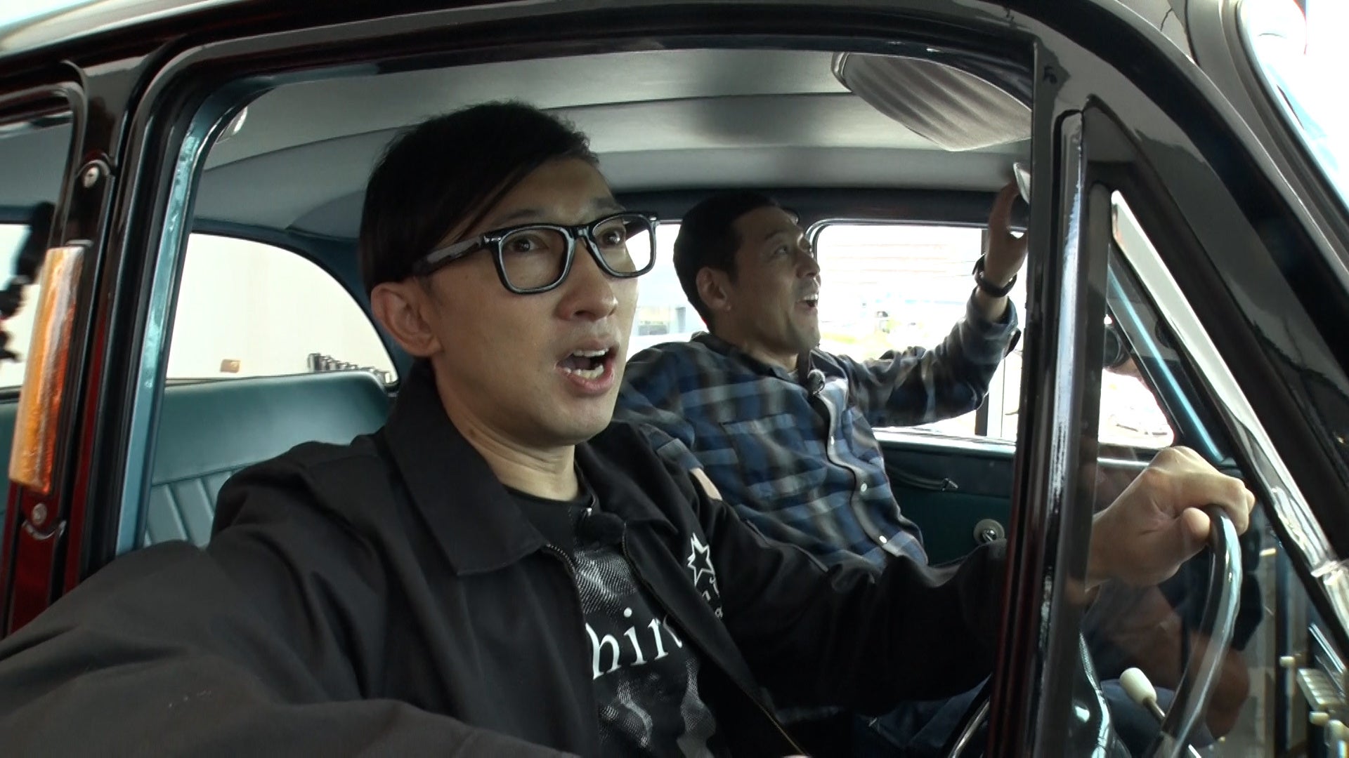 8月にグランドオープンしたばかりの同店には、初代クラウンが飾られていました。キラキラでフォルムが魅力的なクラウンに、東野たちは「めちゃめちゃカッコいい!」「渋っ!」と大絶賛。約10年前、宮崎のオーナーに譲ってもらったものを修理・整備し、新車同様に仕上げたとのこと。自走するということで、エンジンをかけてみることに! その後は、地域密着型のキッズスペースで遊んだり、地元民の憩いの場として作られたカフェで話を聞いたりと、同店の魅力を深掘りします。
