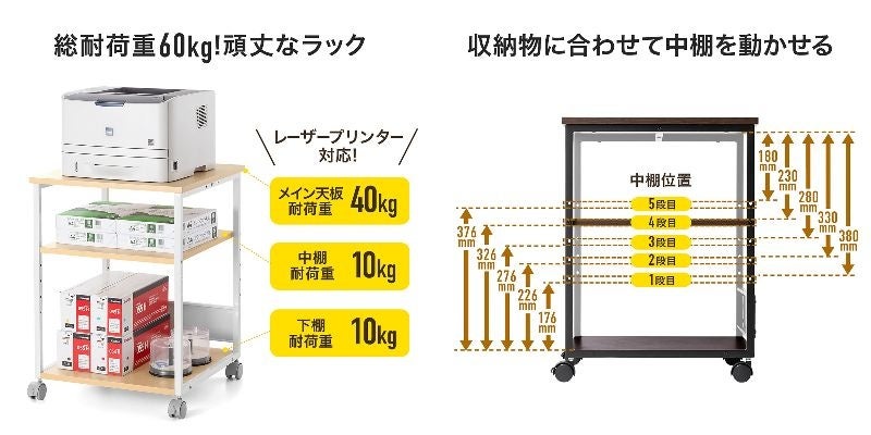新色追加!総耐荷重60kg!高さを合わせデスクと並べて使えるプリンターラックを1月10日発売