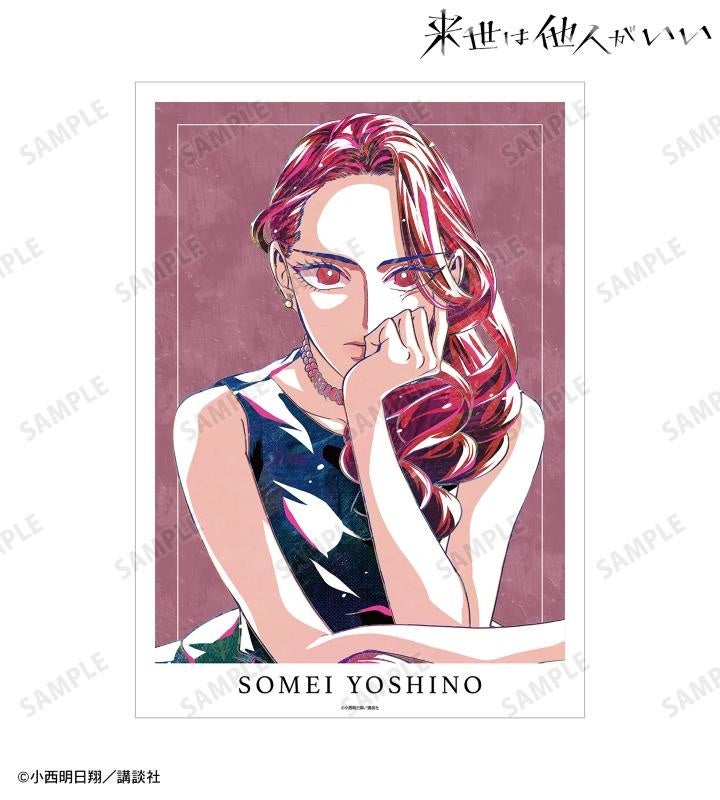 アニメイトで開催された「『来世は他人がいい』アニメイトフェア」の染井吉乃、深山霧島、鳥葦翔真を新たなタッチで魅力的に表現し、A3サイズのマット加工されたポスターに仕上げました。