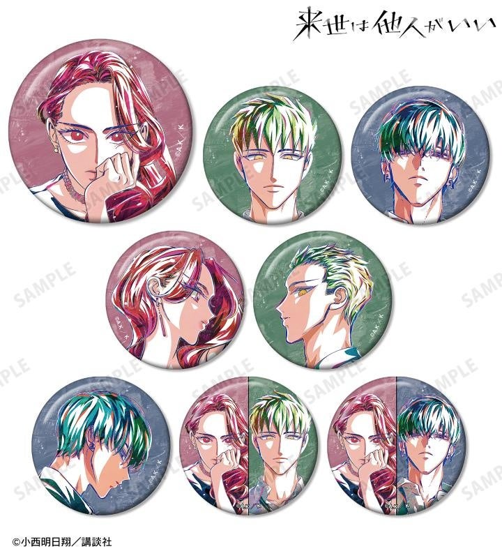 アニメイトで開催された「『来世は他人がいい』アニメイトフェア」の染井吉乃、深山霧島、鳥葦翔真を新たなタッチで魅力的に表現し、缶バッジに仕上げました。