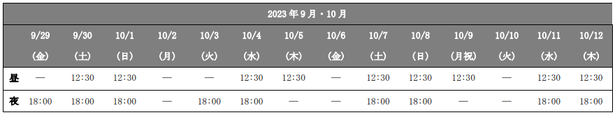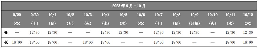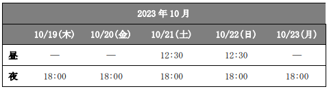 [大阪公演] 2023年10月19日(木)~10月23日(月)