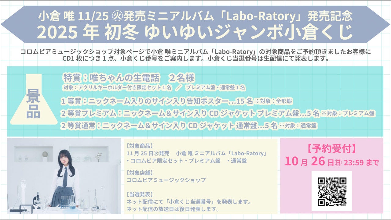 ◇小倉 唯 ミニアルバム「Labo-Ratory」発売記念 【2025年 初冬 ゆいゆいジャンボ小倉くじ】