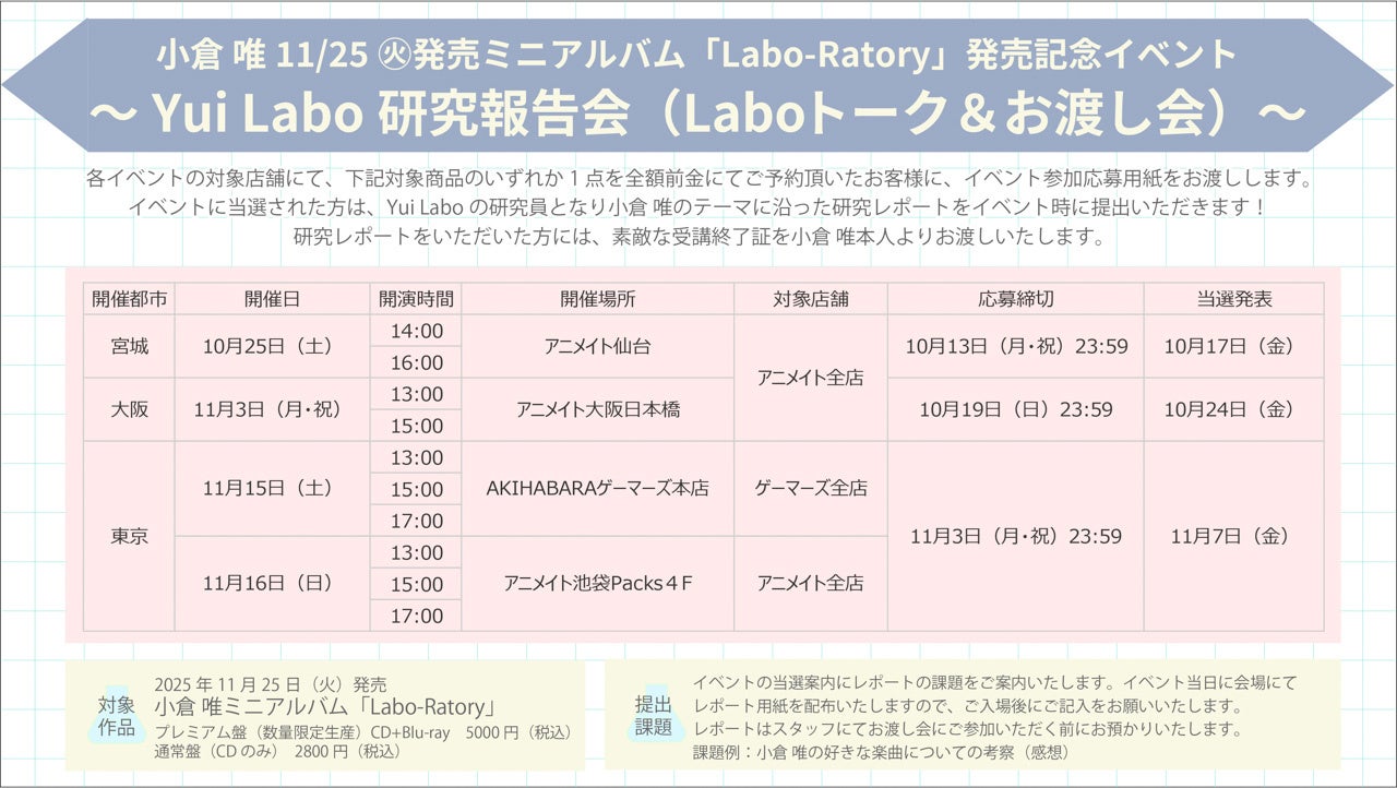 ◇小倉 唯 ミニアルバム「Labo-Ratory」発売記念イベント ~Yui Labo研究報告会(Laboトーク&お渡し会)~
