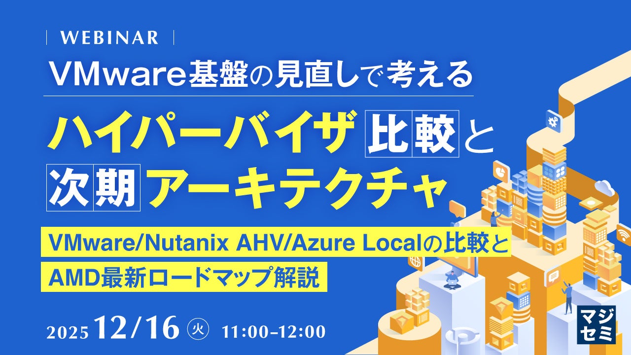マジセミ株式会社は「VMware 基盤の見直しで考えるハイパーバイザ比較と次期アーキテクチャ」というテーマのウェビナーを開催します。