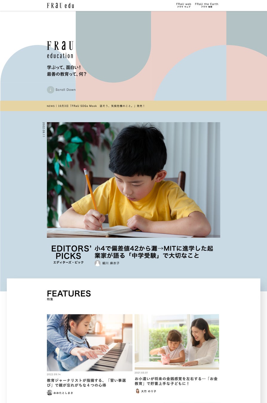 - 『FRaU edu』保護者と子に寄り添い、読者と一緒に「今の時代に必要な教育」を探る